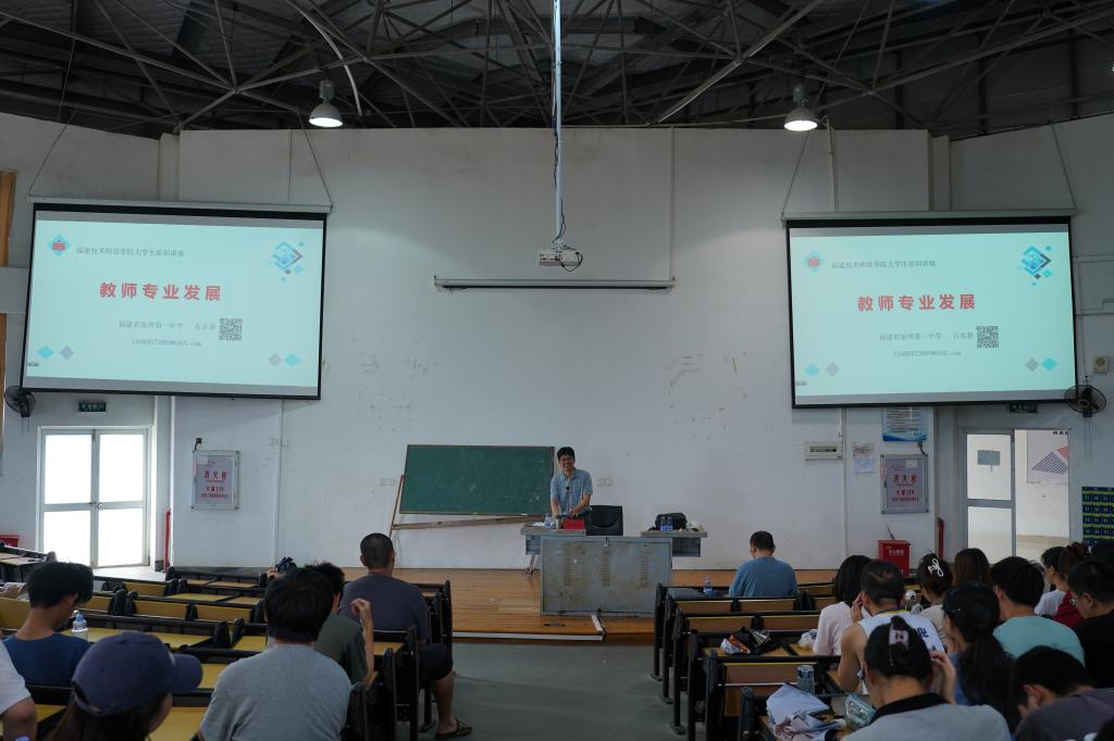 6月15日上午,学院邀请福建省优秀教师、泉州市第二届教学名师石志新以“教师专业发展”为题,在向高园报告厅(二)为应用化学(师范)专业师生开展专题讲座。应用化学专业主任程锦添博士主持本次讲座。