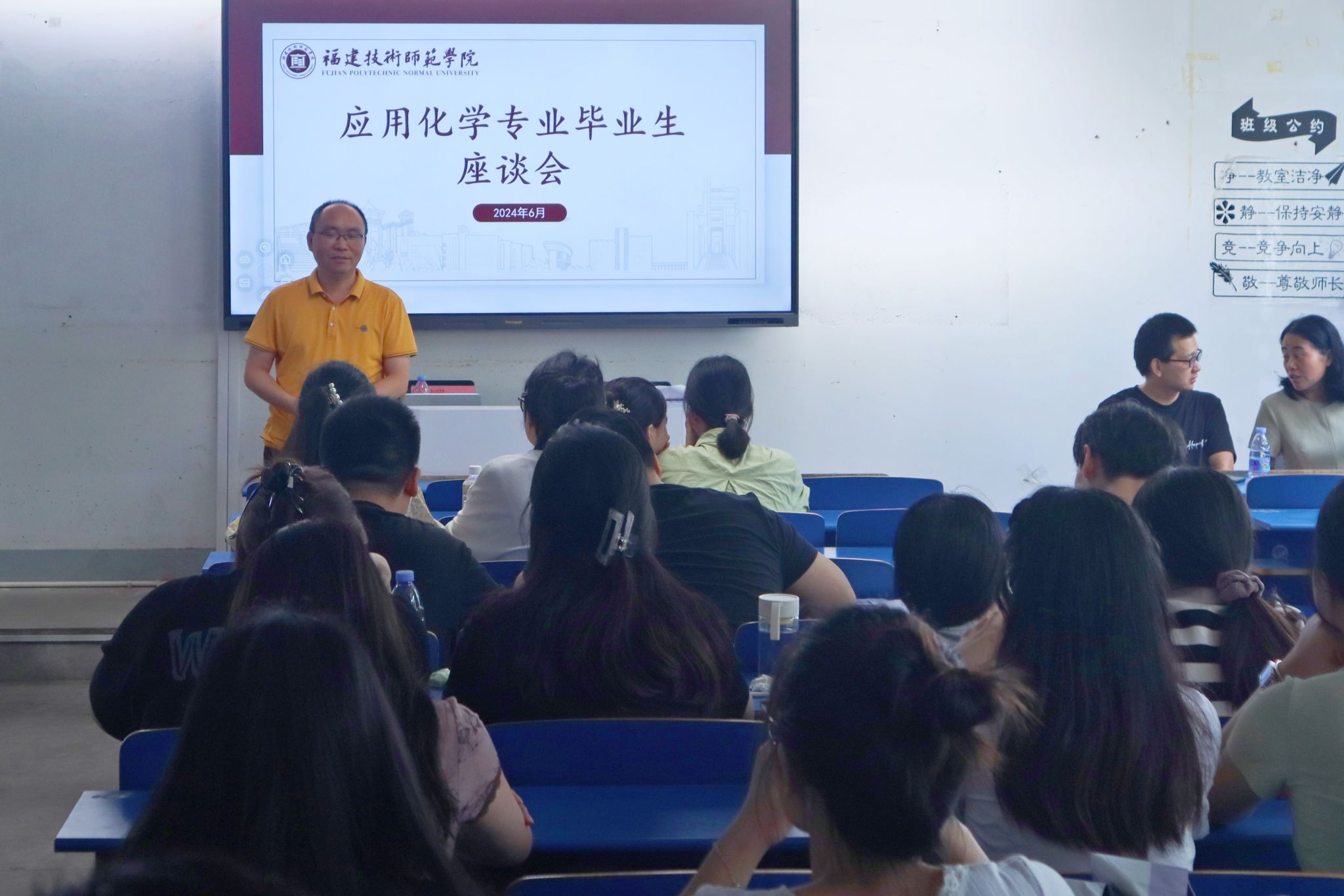 6月20日上午,根据学校工作安排,我院分别在科学楼501和502教室召开包装工程、应用化学(师范)专业座谈会。院党委副书记(主持工作)林伟、院长林渊智、各专业主任、教师代表及全体毕业生参加此次座谈会。