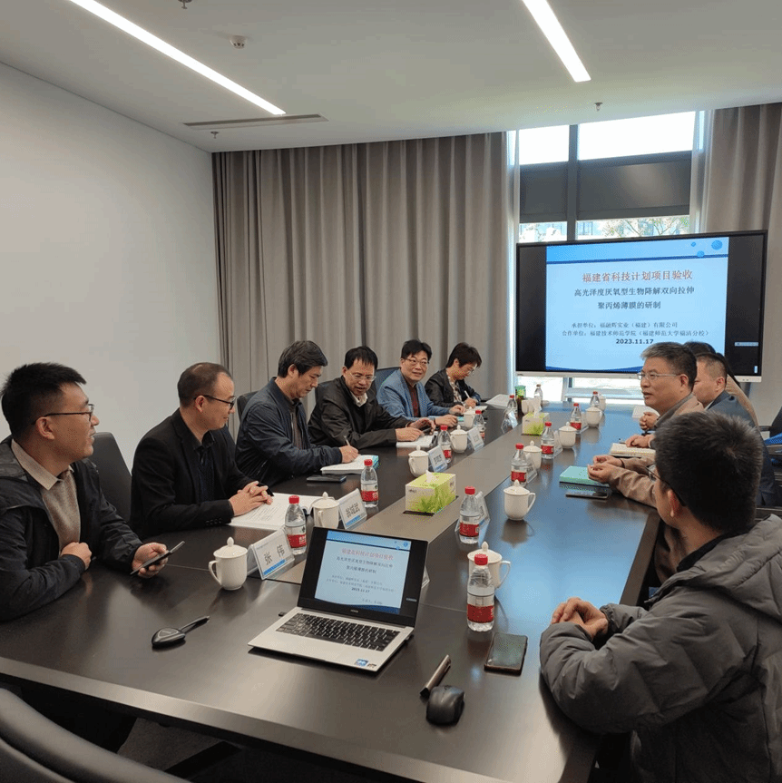 11月17日上午,福建省科技厅组织专家组一行来融,对我院、福融辉实业(福建)有限公司联合承担的区域发展项目《高光泽度厌氧型生物降解双向拉伸聚丙烯薄膜的研制》(项目编号:2020H4005,立项经费100万元)进行验收。项目技术负责人我院院长林渊智教授,团队成员苏羽航、余立、卢修强老师及福融辉实业(福建)有限公司代表等参与了本次项目验收会议。
