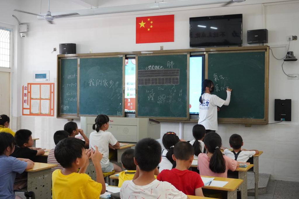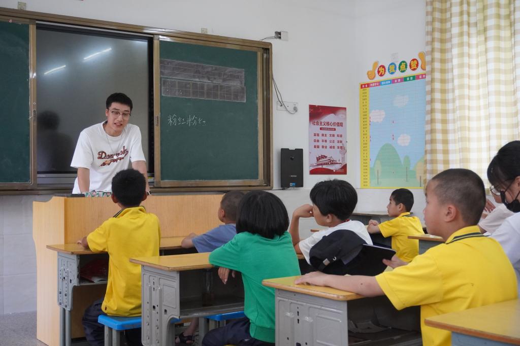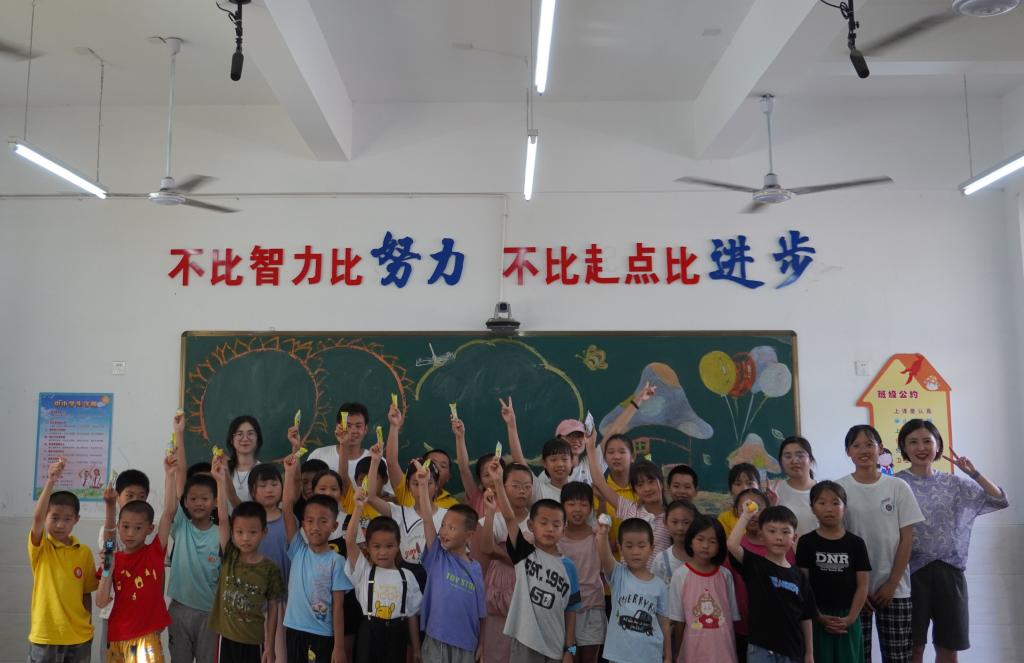 关爱留守儿童,播种爱与希望。顶着炎炎烈日,我院实践队来到溪尾乡中心小学开展“留守儿童关怀行动”。队员们给孩子们准备了自然科学、趣味实验、绘画创作和安全教育等四堂课,带来了许多零食和小礼品;孩子们通过亲身参与生动有趣的表演,在欢声笑语中接受了新知识。在开拓孩子们的视野、点燃孩子们的希望的同时,我们更期待他们在成长道路上永远拥有一颗爱人的心、感恩的心,积极向上,健康成长。