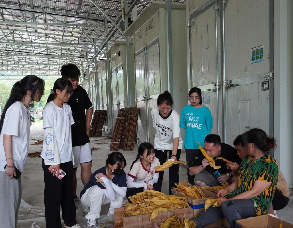 深入基层一线,锤练过硬本领。实践队深入秀峤村农户开展十九届六中全会精神、疫情防控、森林防火、交通安全、反电信诈骗等宣讲工作。队员们耐心地讲解资料的内容,主动关心村民们的身体健康,询问日常生活等情况,宣传内容贴近生活,交流现场气氛融洽;期间,村民们热情地邀请队员们一起制作当地特色美食糍粑。在烤烟厂烟农的指导下,队员们学习了烟叶生产、烘烤等相关知识,尝试根据烟叶的外观状态甄选分类不同品级烟叶。