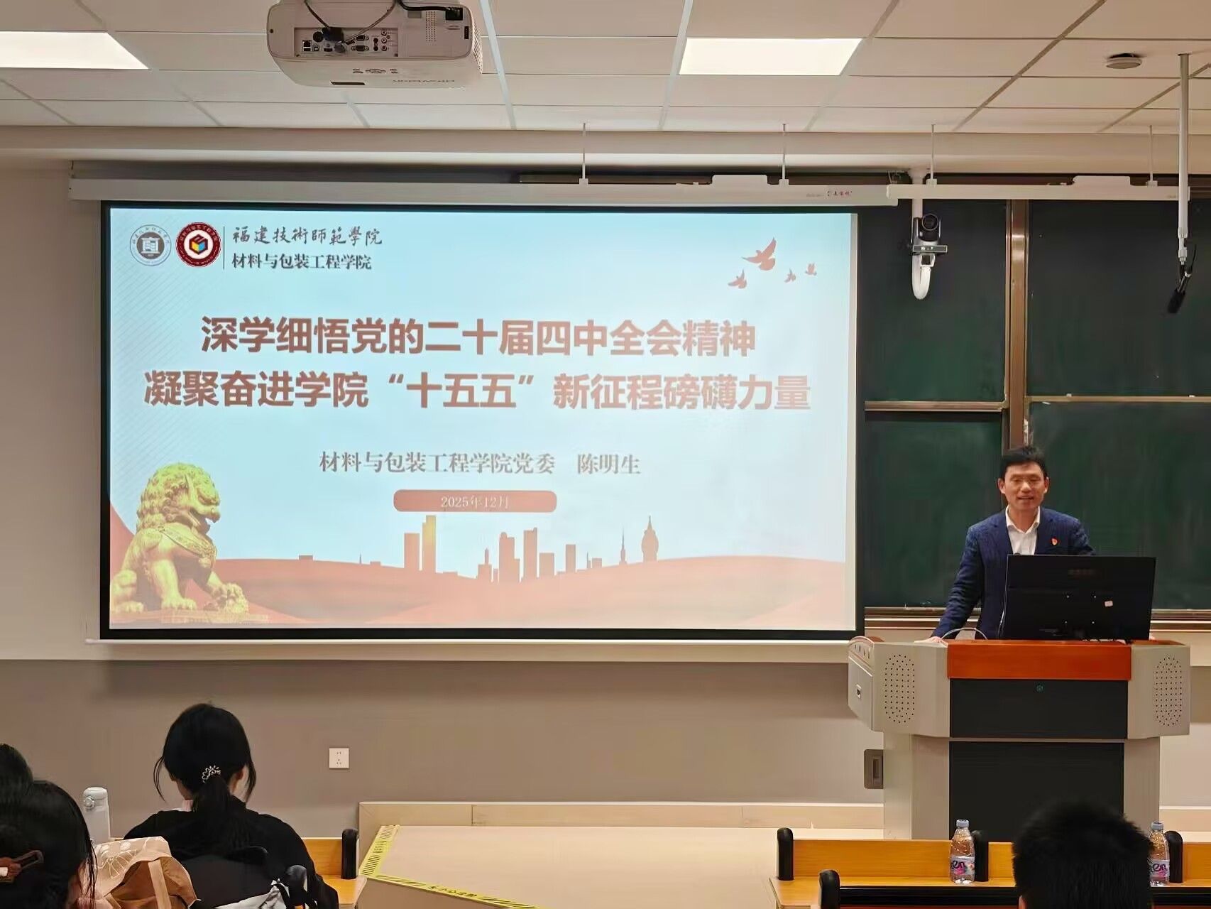 12月19日下午,学院党委在笃行4-304组织开展党的二十届四中全会精神专题宣讲会。学院党委副书记(主持工作)陈明生以《深学细悟党的二十届四中全会精神,凝聚奋进学院“十五五”新征程磅礴力量》为题开展宣讲,全院师生党员及入党积极分子参加学习。