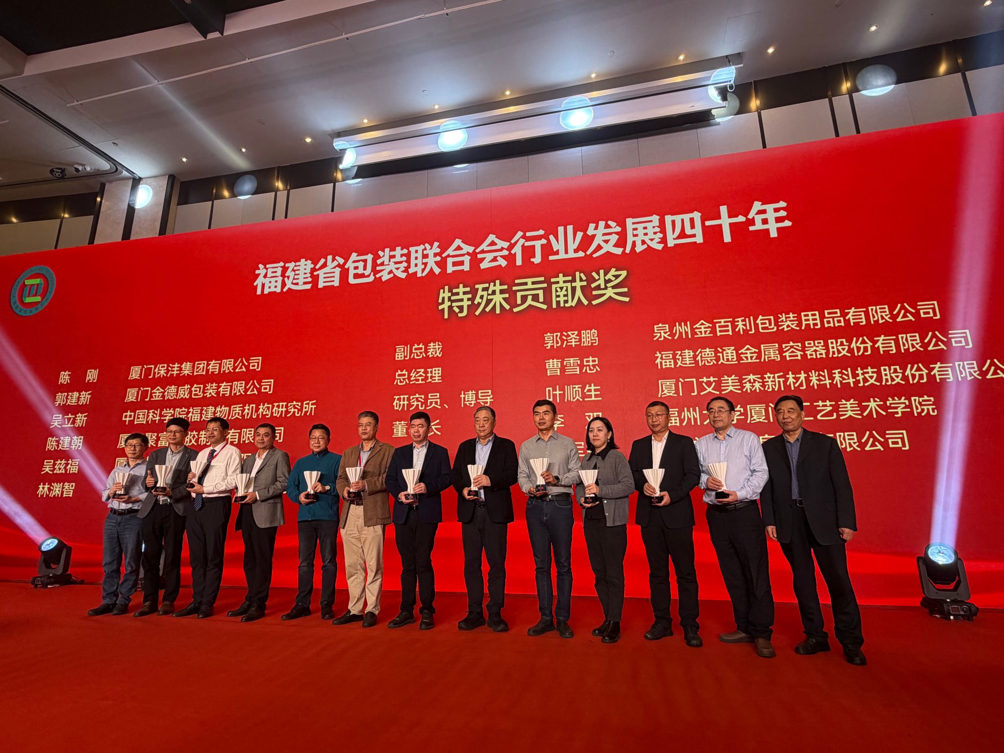 12月12日,福建省包装联合会四十周年庆典大会暨第七届第二次会员大会在厦门圆满召开,林渊智教授荣获福建省包装联合会发展四十年特殊贡献奖,凸显我院在包装领域为福建省包装行业作出的突出贡献。