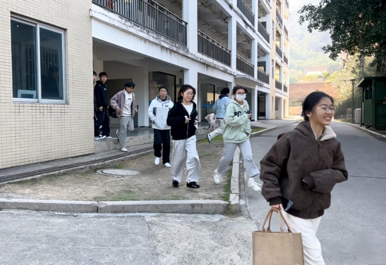 随着警报声响起,全体同学迅速进入紧急疏散状态。大家严格遵守演练纪律,听从现场指挥,迅速有序地撤离至乐森田径场。整个疏散过程组织有序、响应迅速,达到了预期效果。