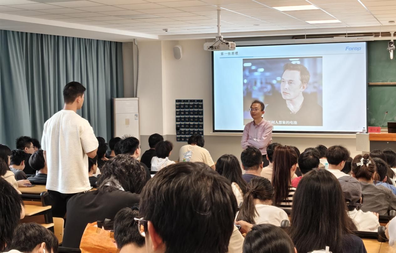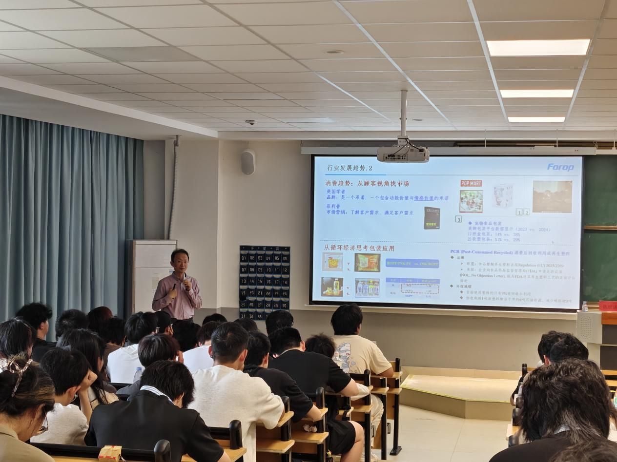 4月22日下午,一场题为“从高分答卷到解决问题——职场生存的第一性原理”的学术讲座在笃行楼3-102教室举行。福融新材料股份有限公司总工程师、UCLA材料学博士张顺淇受邀担任主讲,我院2023级包装专业与应用化学专业同学到场聆听。