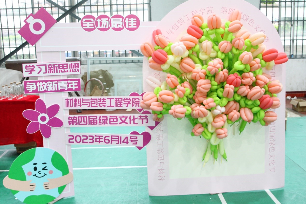 本次活动紧紧围绕学习贯彻习近平新时代中国特色社会主义思想主题教育,紧密结合学院学科专业特色,设立了新思想主题板方砖墙、知识竞答区、三争创优展特色区和绿色发展我做主区等展区,将学习新思想融入绿色文化,融入学生生活。活动现场,同学们运用专业所学,发挥聪明才智,设计绿色环保作品,展示各自专业风采。如应用化学专业同学运用试剂的化学反应,带来了快速“变色”瓶;材料科学与工程专业同学动手制作了无毒无添加纯手工制作的口红和滋润抗氧化的肥皂,展示了具有特殊用途的光电材料;环境工程专业同学设计制作了净水装置、垃圾分类艺术展,采用环境友好材料制作彩绘瓶;包装工程专业同学设计推出打卡区邮筒、方块盒和考研心愿墙;海洋资源与环境专业同学呈现了裙带飘飘的水母和美味海蜇皮……
