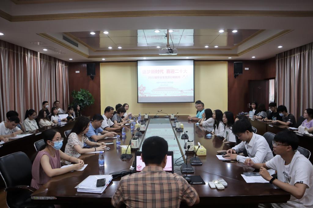 6月22日下午,我院党委在科学楼综合会议室召开“逐梦新时代,喜迎二十大”毕业生党员行前教育。本次活动由毕业班辅导员邝献有主持。