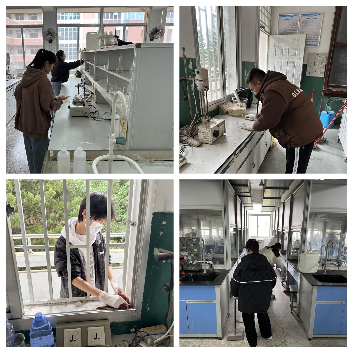 在院行政办公室公共区域、学院实验室,学院学生党员认真清理楼道卫生、擦洗玻璃、整理实验室器材,努力发挥好“文明创建我先行·创建文明我带头”学生党员示范表率作用。