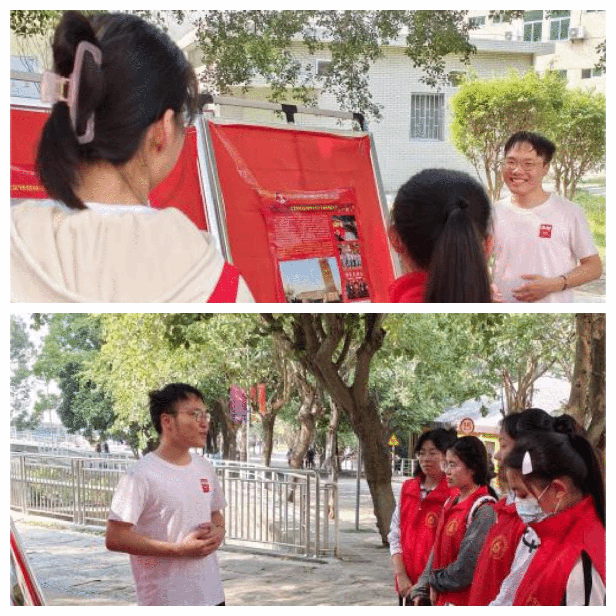 志愿者们在五马山校区素心园大榕树下设置了学雷锋文化展板,向往来的师生宣讲雷锋生平、雷锋故事、雷锋日记,展示毛泽东等老一辈革命家为雷锋同志的题词。展板旁还设置了学雷锋精神宣传横幅,同学们共同在“传承雷锋精神 弘扬榜样力量”上留下自己的青春感言。