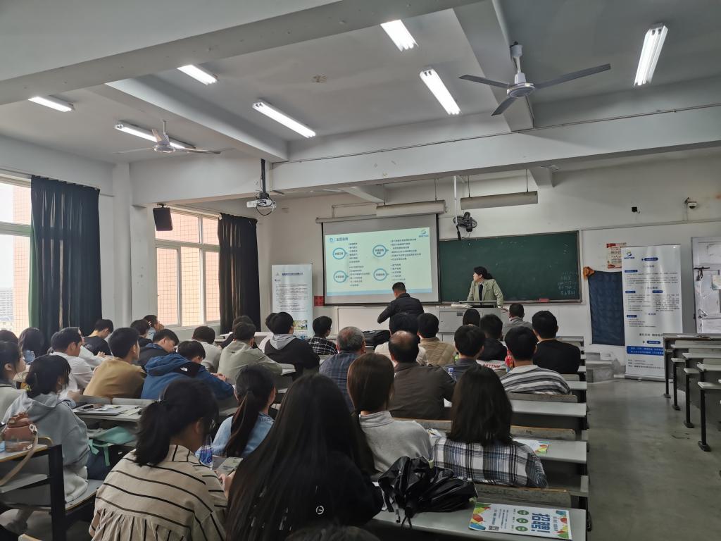 此次招聘会邀请了“福清市福康环保科技有限公司”、“福建新时代环保科技有限公司”等2个环保公司进校园。招聘会现场,两家企业负责人通过播放宣传片、PPT展示等方式,分别向同学们介绍了公司的发展概况,展示了公司主营业务内容。此外,各企业负责人详细地介绍了此次公司招聘的工作岗位、薪酬福利待遇等内容。参加现场招聘会的同学就今后职业发展方向、未来职业规划等感兴趣的问题同企业进行沟通交流,企业负责人逐一耐心解答,会议现场气氛热烈。