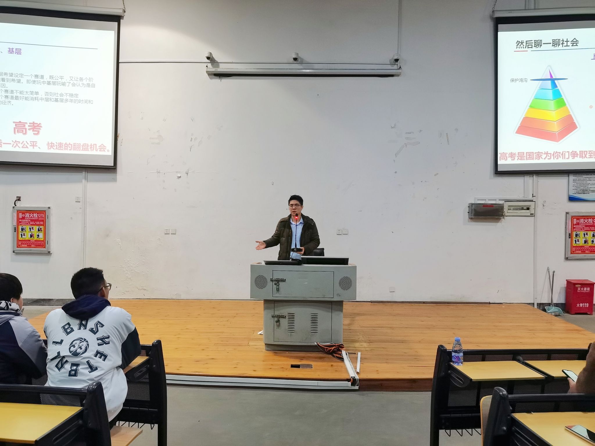 随后,学院孙国栋博士以自身经历为切入点,分享自己的考研经验,鼓励同学们学好专业知识,合理规划自己的未来,做出正确选择。