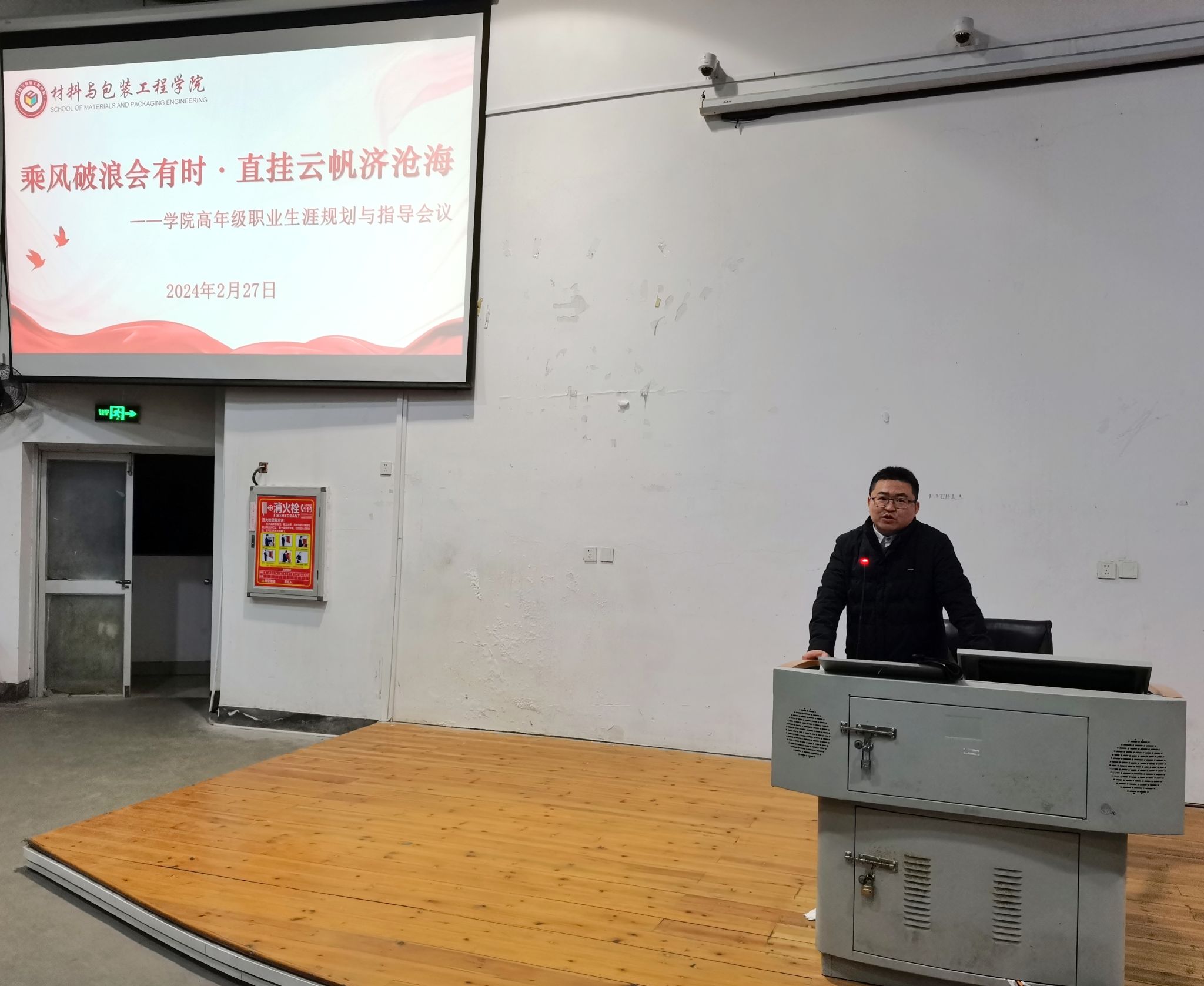2月27日晚,我院在向高报告厅(二)以“乘风破浪会有时,直挂云帆济沧海”为主题召开高年级职业生涯规划与指导会议。我院党委副书记(主持工作)林伟、院长林渊智、院党委委员、教师代表孙国栋以及2021级辅导员李薇,2021级全体同学、2023级应用化学(专升本)专业同学参与本次会议。此次会议由李薇老师主持。