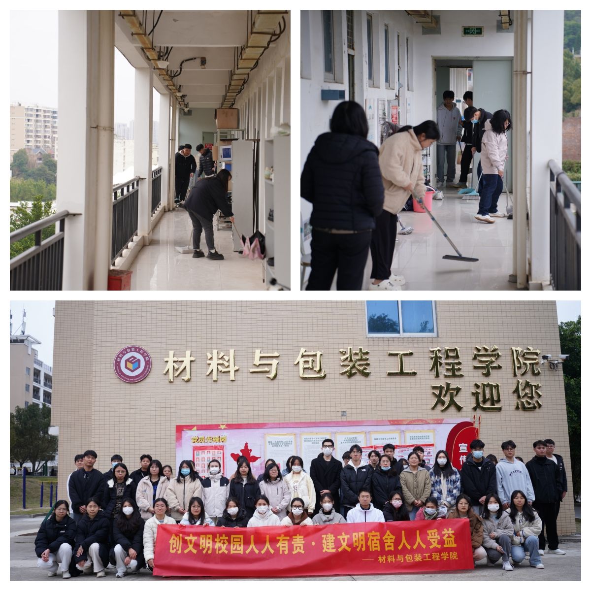 在向高区学生公寓、24号楼、日新园宿舍楼,学院学生干部重点打扫宿舍区域公共卫生、清理楼道杂物、堆积物等,为文明校园创建积极营造“创文明校园人人有责·建文明宿舍人人受益”的良好氛围。