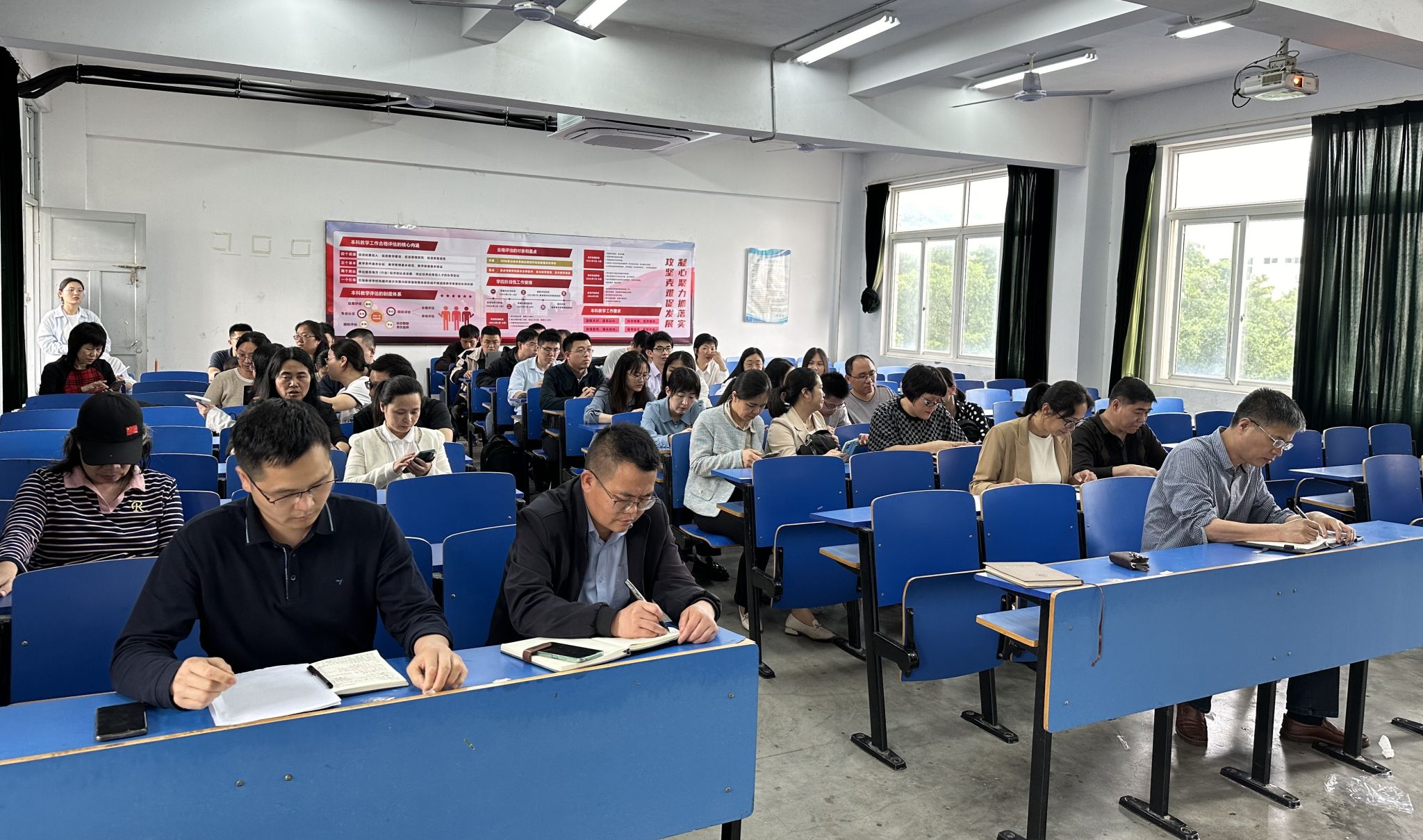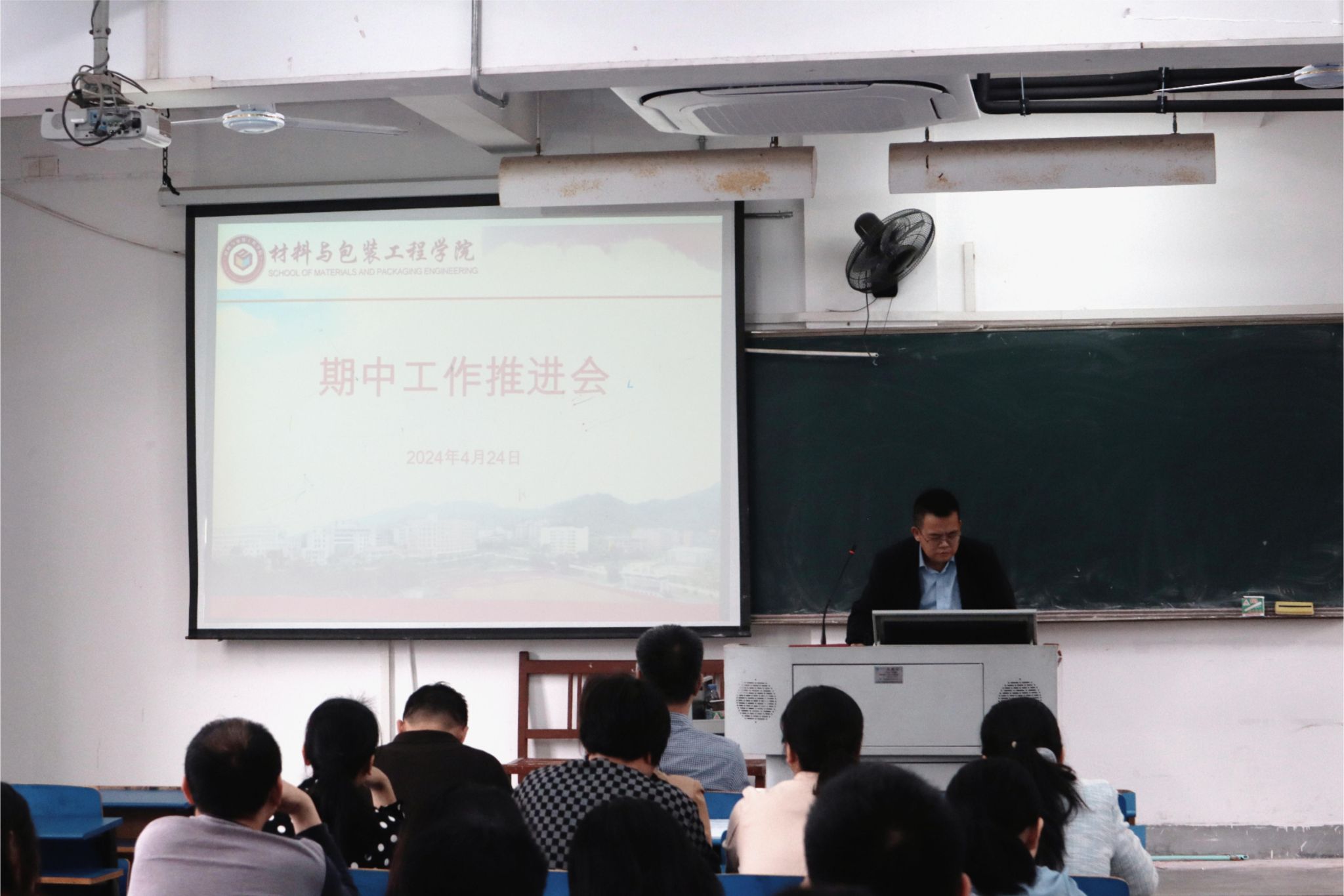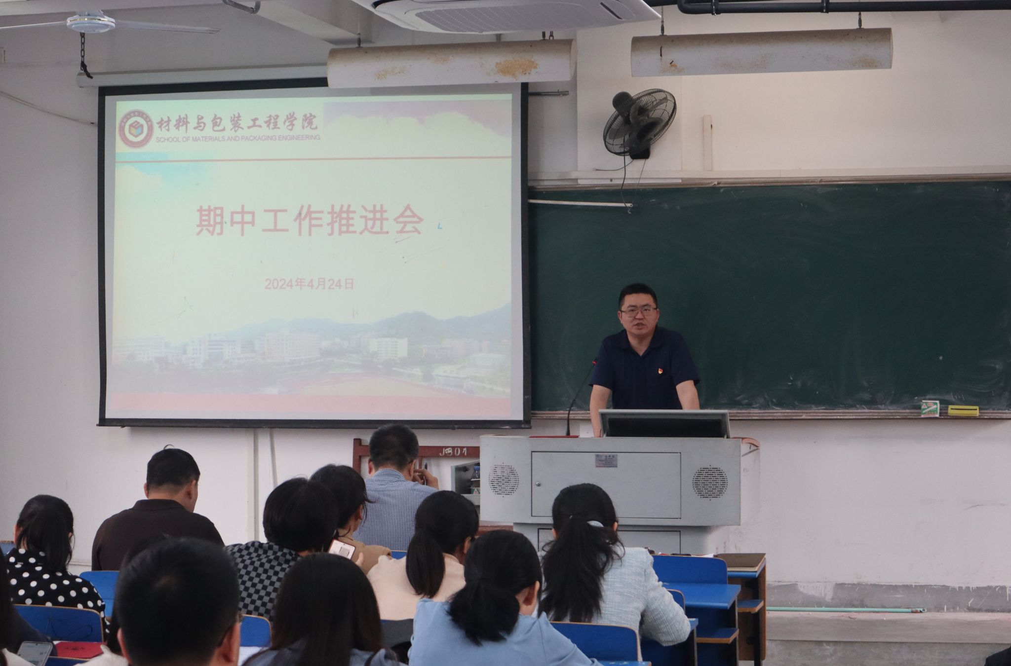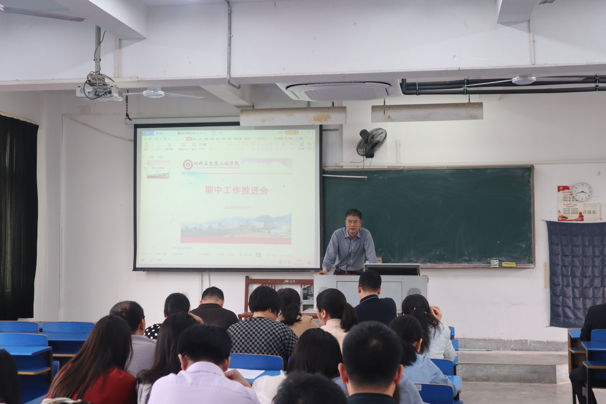 4月24日下午,我院教学楼506召开期中工作推进会议,学院党政领导、全体教职工参加此次会议,会议由院党委副书记(主持工作)林伟主持。