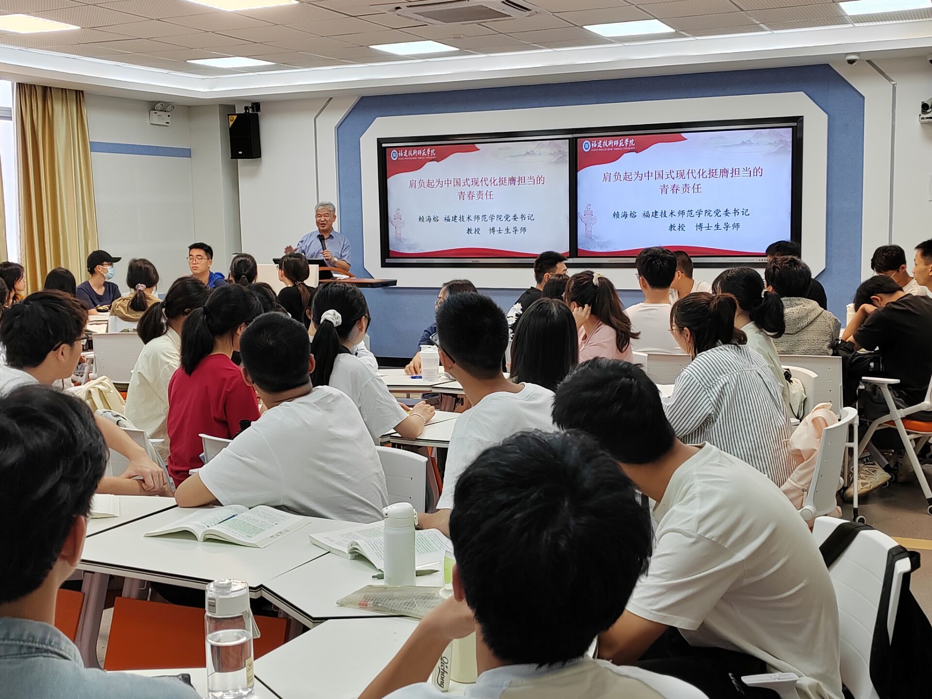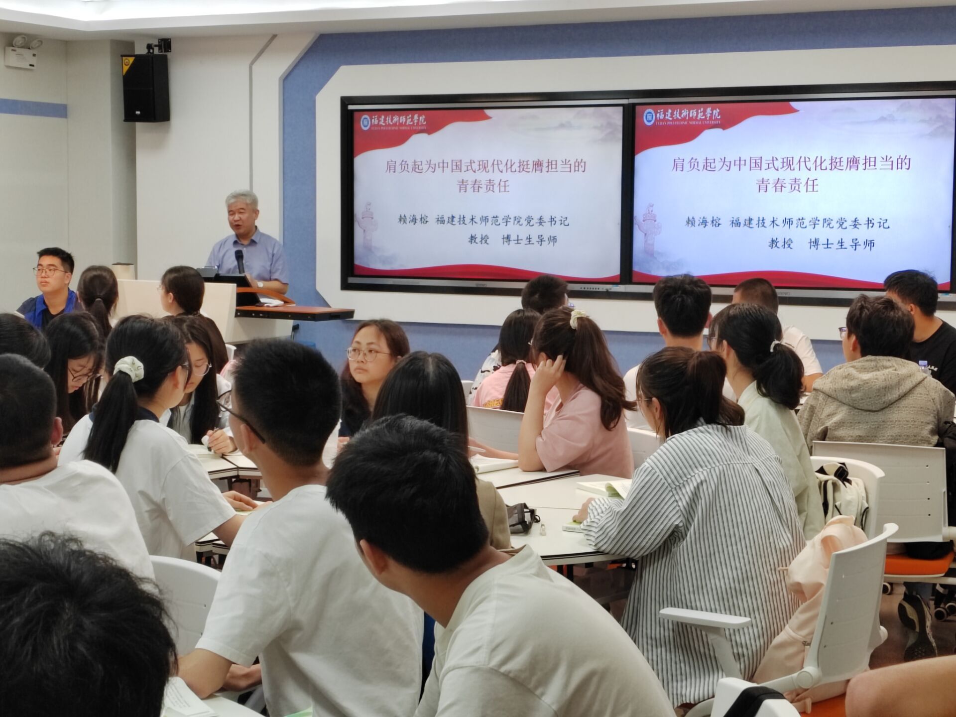 5月9日下午,校党委书记赖海榕教授以《肩负起为中国式现代化挺膺担当的青春责任》为题,在五马山校区科学楼智慧教室为我院2023级应用化学专业学生上思政课。