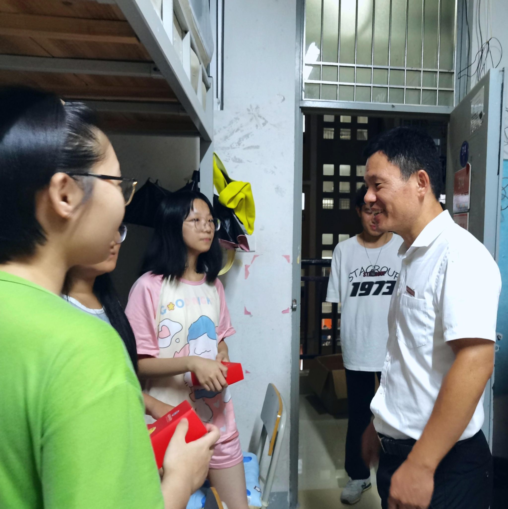 9月11日晚上,我院组织开展中秋慰问活动,学院党委副书记(主持工作)陈明生以及新生辅导员谢锦龙,深入学生一线,走访向高园宿舍区,为我院2024级新生送去中秋佳节的慰问。