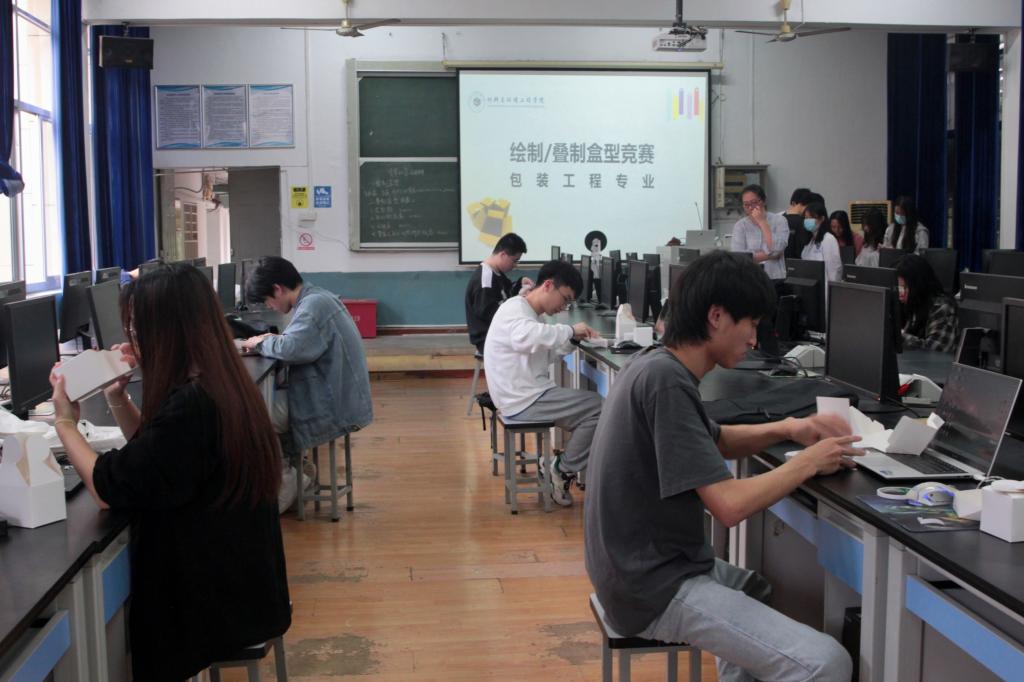 我院环境工程、包装工程、应用化学专业分别根据自身学科特色设置了污水净化技能竞赛、绘制/叠制盒型竞赛、制备多用洗洁精实验竞赛,同时增设公共组技能竞赛,加强了各专业的交流和碰撞。经过两个小时的精彩角逐,各位参赛选手精力集中,争分夺秒,又快又好地完成了比赛项目。