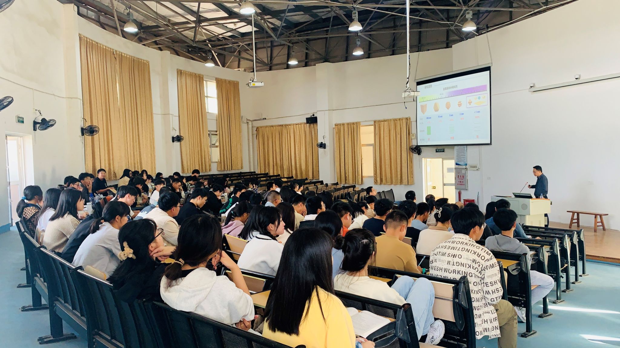 讲座中,朱起龙研究员为我院师生分享了,通过电催化、电合成,实现对金属纳米催化剂的原子级调控、设计和构筑新颖原子位点纳米材料等的前沿科技。在互动环节中,他还为我院师生在参与科研课题、明确考研目标上答疑解惑,鼓励同学们多了解前沿进展和技术趋势,努力提高学历层次,为之后的科研之路提供更好的基础。