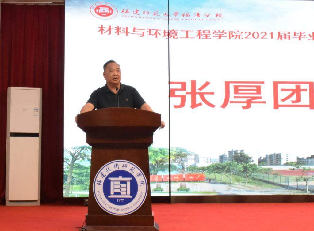 回首青春无悔,前望繁花似锦。为祝贺2021届毕业生学子圆满毕业,向其送上学院衷心的祝福与美好的祝愿,2021年6月23日下午,我院于科学楼学术报告厅举办2021届毕业生欢送会。学院党委书记张厚团、院长林渊智、副院长杨金杯、副院长吴代顺、环境工程专业主任杨文卿、毕业班辅导员刘锋及2021届毕业生参与本次欢送会。本次活动由方晨彦老师主持。
