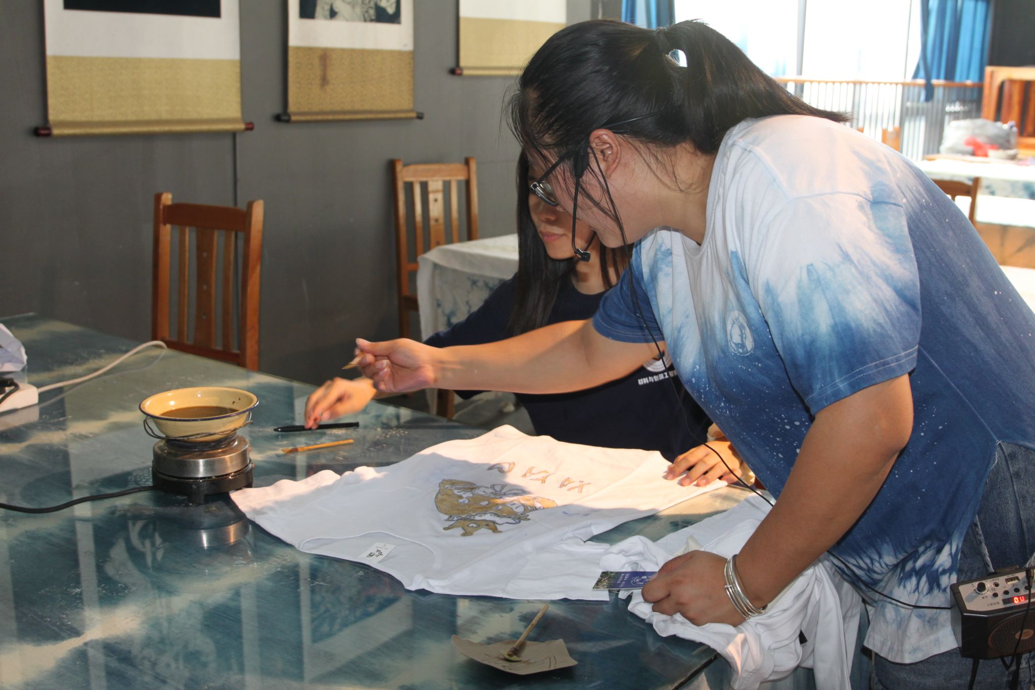 实践队一行前往湖南省湘西土家族苗族自治州凤凰县“蜡的世界”蜡染体验馆,体验传统非遗蜡染技艺。蜡染老师从古代印花技艺、染料提取、蜡染创作及蜡染作品的寓意等方面,给实践队队员们上了一堂生动有趣的蜡染理论课。在老师的悉心指导和鼓励下,实践队员们亲自上手体验,从构图、上蜡、染色、脱蜡、清洗,最终志得意满的制得成品。通过此次蜡染制作和展示活动,队员们纷纷表示,蜡染是我们民族的传统文化,也是古人化学智慧的运用。今后,要把应用化学、材料科学等学科专业知识学好、学深、学透,找准服务社会的契合点,让专业有用武之地,真正走好产学研结合的道路。