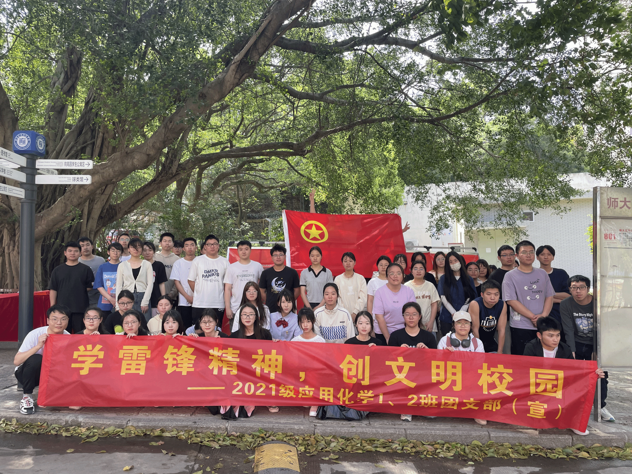 三月春风暖人心,“锋”火相伴代代传。为进一步弘扬和传承雷锋精神,3月24日下午,我院组织学生第五党支部、2021级应用化学1班、2班团支部开展“学雷锋精神 创文明校园”的主题实践活动。