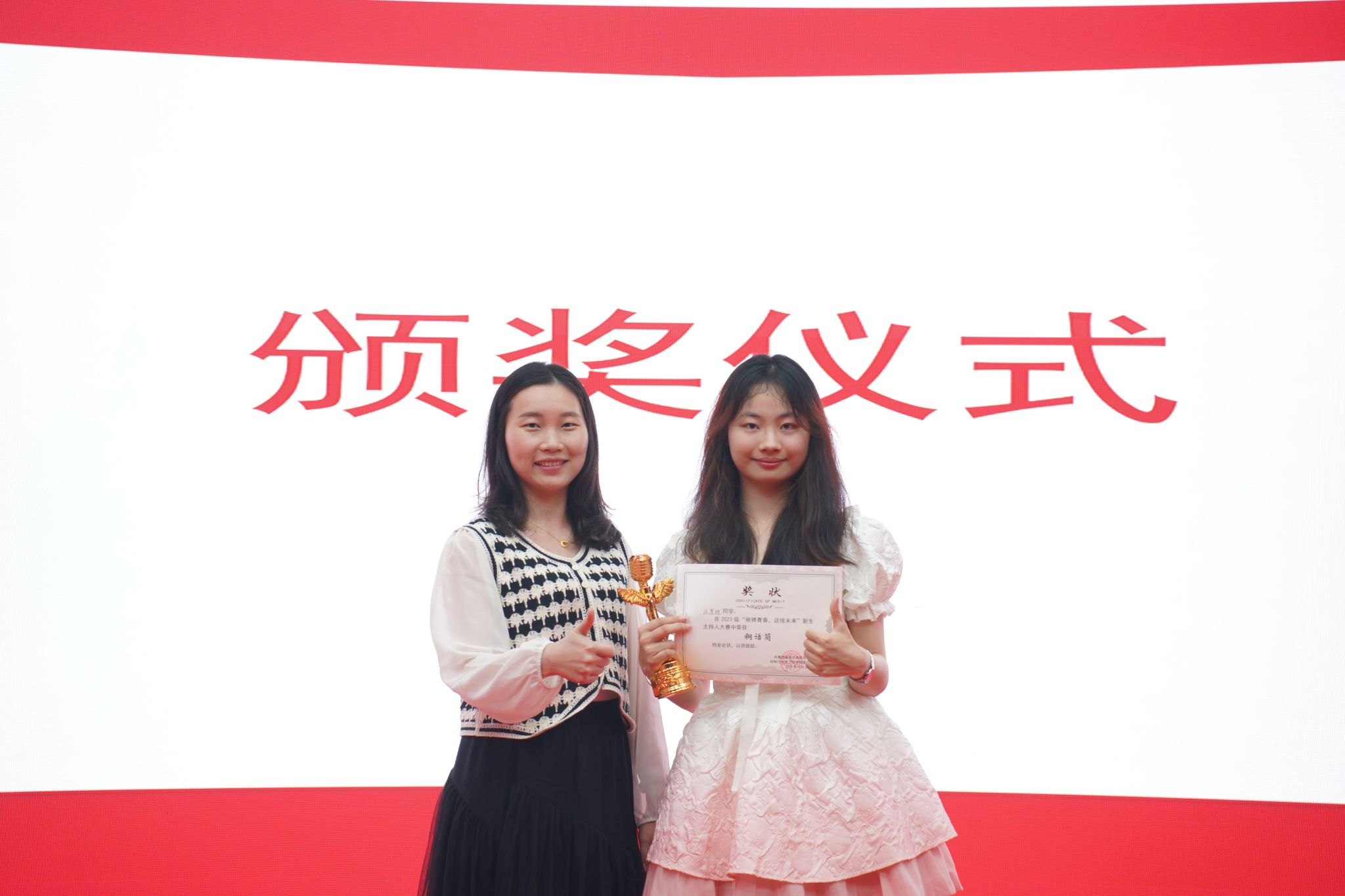 本次比赛,2023级应用化学(师范)焦文颖获金话筒奖、2023级材料科学与工程陈佳玟获银话筒奖,2023级材料科学与工程汪梦妍获铜话筒奖,2023级材料科学与工程常乐意、2023级应用化学(师范)曾美玲、2023级包装工程焦慧林获优秀奖,2023级应用化学(师范)林书宸、2023级包装工程欧智斌、2023级应用化学(师范)陈少迪、2023级应用化学(师范)陈恩哲获最佳风尚奖。