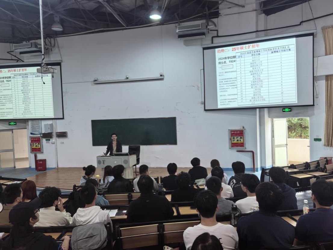 为进一步提升学风建设质量,激发学生考研热情,帮助学生做好考研规划、增强升学信心和动力,10月29日,学院在向高三报告厅举办2027届考研动员大会暨考研指导公益讲座,2023级本科学生参加活动。