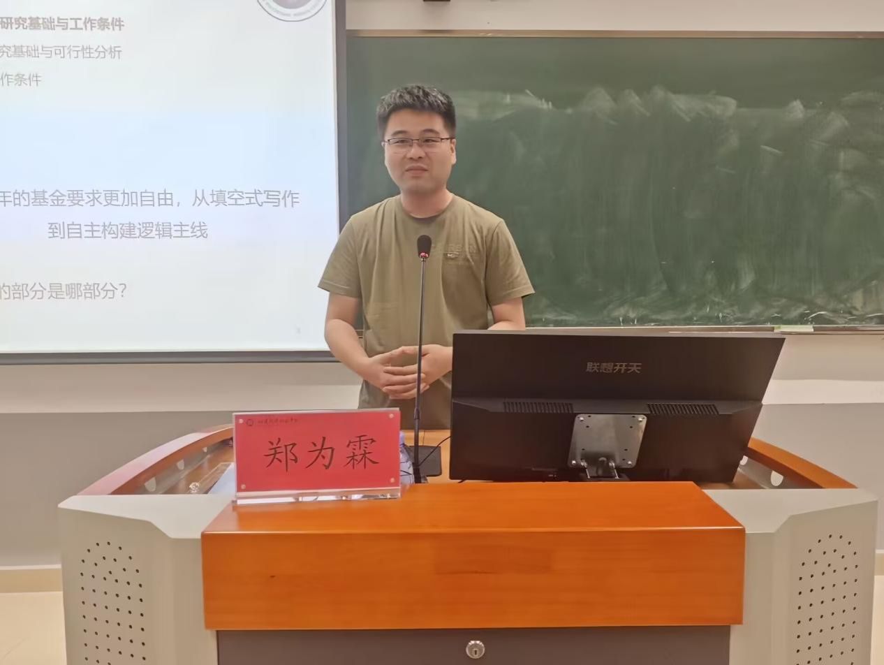为增进学术交流,提升学术氛围,进一步帮助教师攻克科研项目申报难点堵点问题,4月15日下午,我院在笃行楼3-202举办“尝试讲好一个科学故事:国青基的书写感悟”专题讲座。讲座由学院副院长李世迁主持,国家自然科学基金青年科学基金项目获得者郑为霖博士主讲,学院全体专任教师参加。