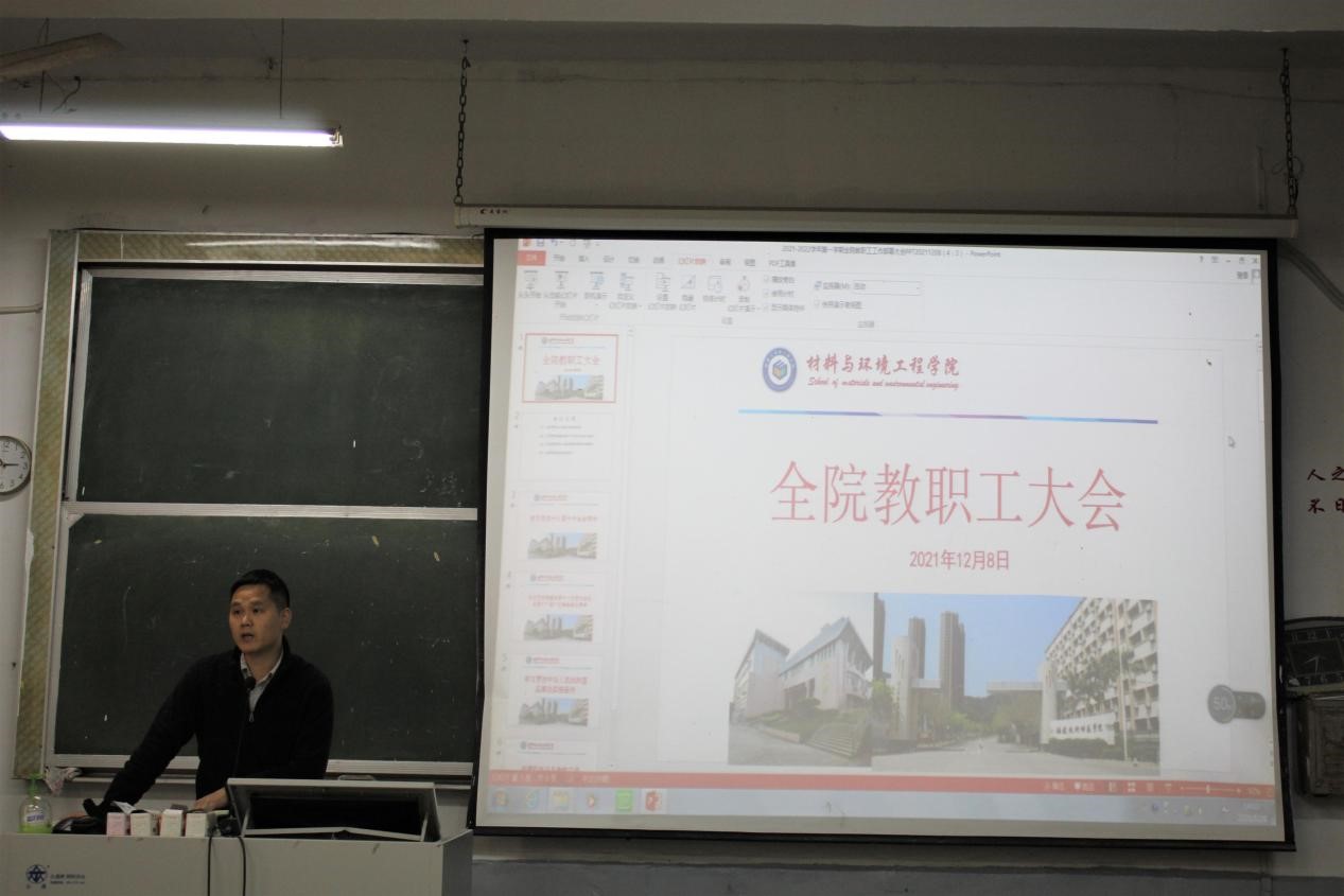12月8日下午,我院于实验楼110召开全院教职工大会。本次大会由院行政主要负责人林渊智主持。