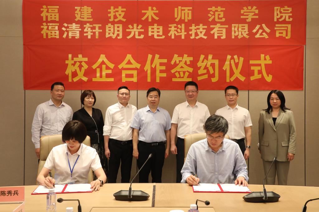 期间,学校与福清轩朗光电科技有限公司举行了科研项目合作签约仪式。福清市委副书记陈恒东指出,福建技术师范学院充分发挥“智囊团”和“助推器”作用,在服务“最福清”高质量发展中取得显著成效,希望学校对接福清主导产业、支柱产业,推动人才培养供给侧和需求侧实现更加有效衔接,为福清产业转型升级等提供更多优质服务。廖校长表示,学校与福清轩朗光电科技有限公司聚焦“光电膜自动包装装置解决方案”开展协同合作,是双方发挥各自优势,推动产业转型升级,实现产教深度融合,打造区域特色联合实验室的生动实践,希望双方共同努力,推动合作项目取得积极成果。