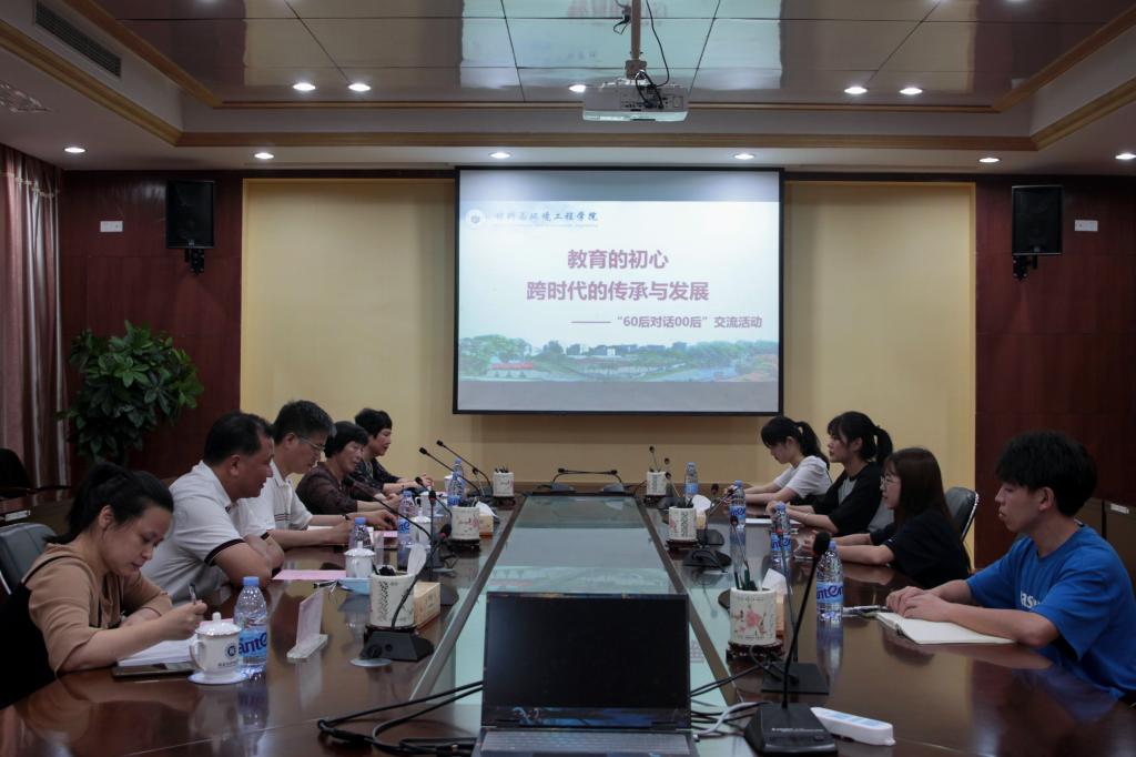 6月1日下午,我院在科学楼综合会议室开展以“教育的初心 跨时代的传承与发展”为主题的“60后对话00后”交流会。我院“60后”教师代表陈素平副教授和张丽琴老师应邀出席,与“00后”学生代表面对面交流。我院行政主要负责人林渊智、办公室主任周永参加本次交流会,活动由我院党委副书记郑向峰主持。