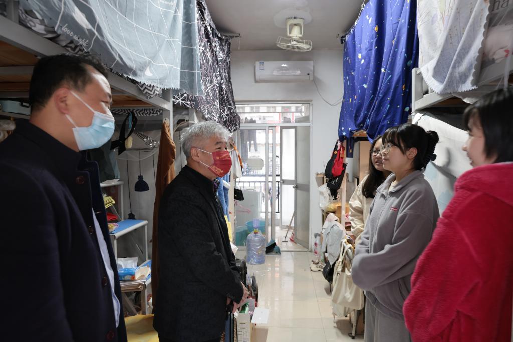 12月13日,校党委书记赖海榕深入学生宿舍,走访看望学生。党政办公室、安全保卫处等单位负责人和我院党委副书记郑向峰参加了有关活动。