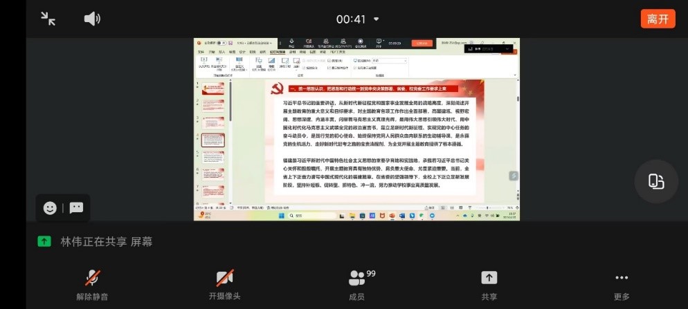 4月20日晚上,学院党委通过钉钉线上会议的形式召开了我院学习贯彻习近平新时代中国特色社会主义思想主题教育工作部署会。会议由校党委组织部副部长林伟(负责学院党委日常工作)主持,学院党政领导、全体师生党员参加了会议。