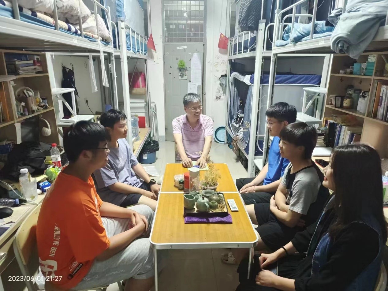 6月1日晚,我院院长林渊智及2022级辅导员吴柳叶深入学生宿舍(向高园2号楼511),与学生们交心畅谈,解答疑问。
