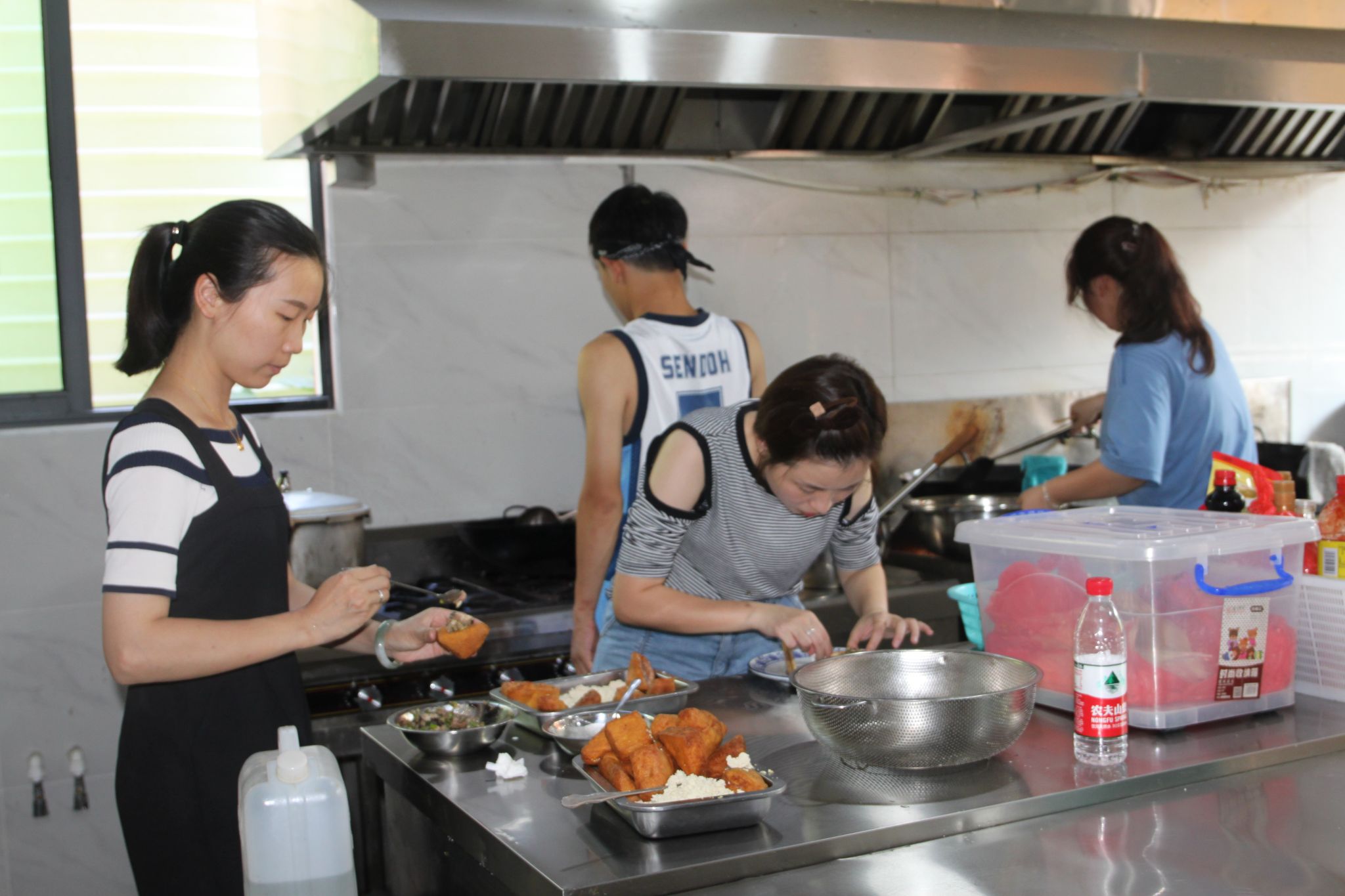实践队队员们前往贵州铜仁学院民族团结进步教育基地参观,基地负责人向队员们详细介绍了有关中华优秀传统文化、地方民族团结进步等方面的研究成果。恰逢苗寨长桌宴活动,队员们大显身手,制作了香炸油豆泡塞肉、糖醋排骨、荔枝肉等代表福建的特色美食,供村民老乡品尝;同时,也饶有兴趣地学习了苗寨酸汤鱼、棉菜粑、捣鱼、腊鸡、凉拌大骨肉等代表民族文化的菜品。队员们以美食为纽带,不仅深刻体验苗族的民族风情,更是亲身感受苗族老乡的热情、淳朴与善良,纷纷表示,要认真学习习近平总书记关于民族工作的系列重要论述,学好专业知识,积极投身服务西部计划等项目,为实现民族复兴伟业而接续奋斗。