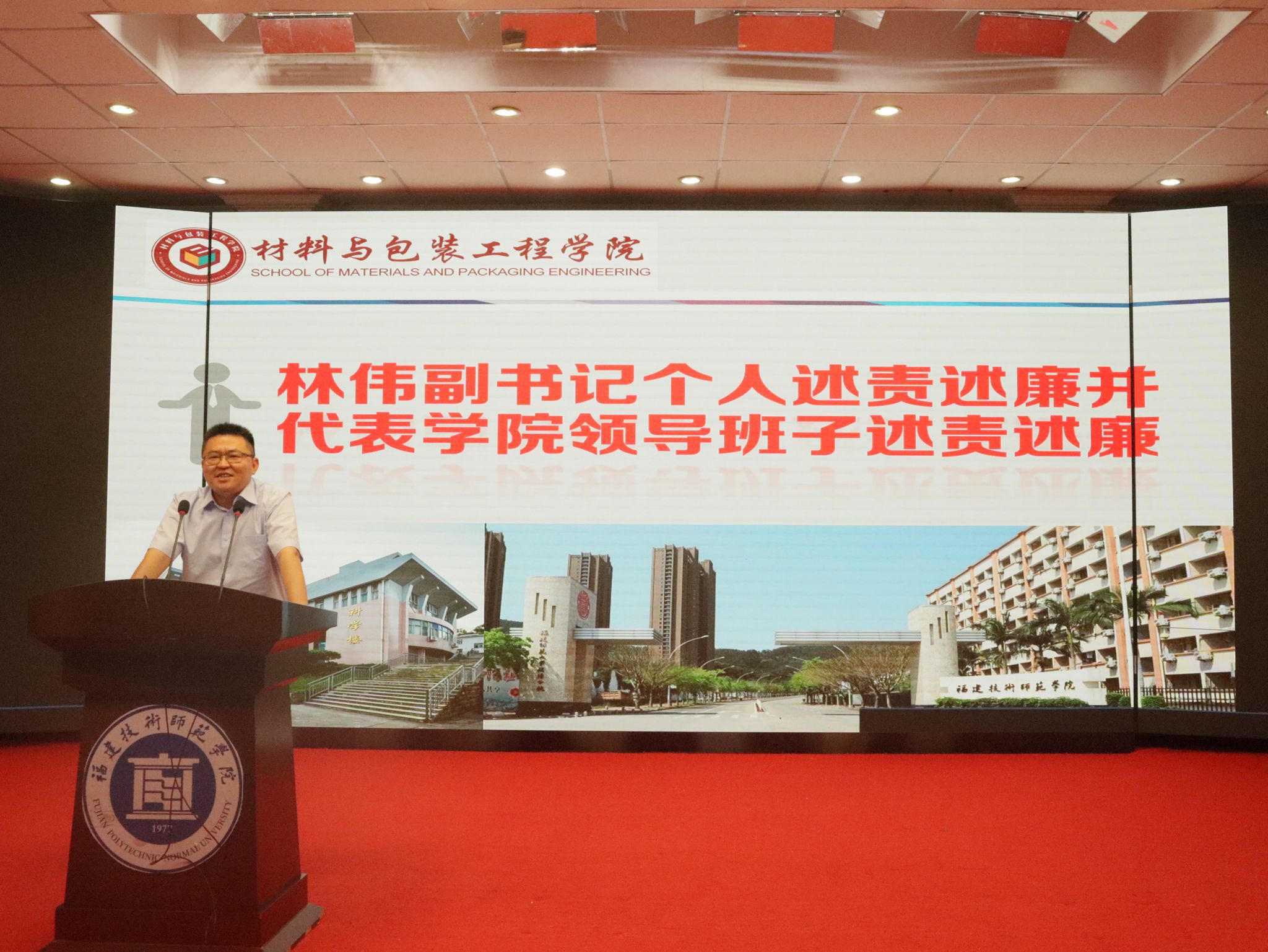 院党委副书记(主持工作)林伟最后进行了个人述责述廉,并代表学院党政领导班子就一年来各项工作开展情况进行了报告,他强调,要正确处理好整体与个体、当下与长远、教书与育人三种关系,指出要紧紧围绕学校办学定位,加强学科专业建设,强化学院内涵建设,努力推动错位发展;要进一步提高政治站位,善于站在学校事业发展、全省职业教育发展全局看待问题,落实立德树人根本任务,服务好学校事业发展;要强化忧患意识,跟紧时代节奏,深化教育教学改革,为下一步开展师范专业认证以及成功申硕而扎实工作。
