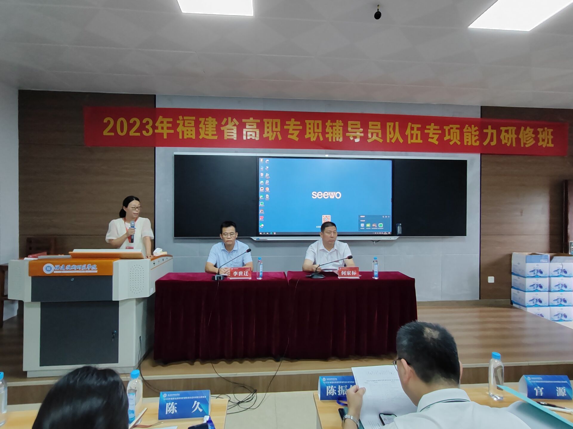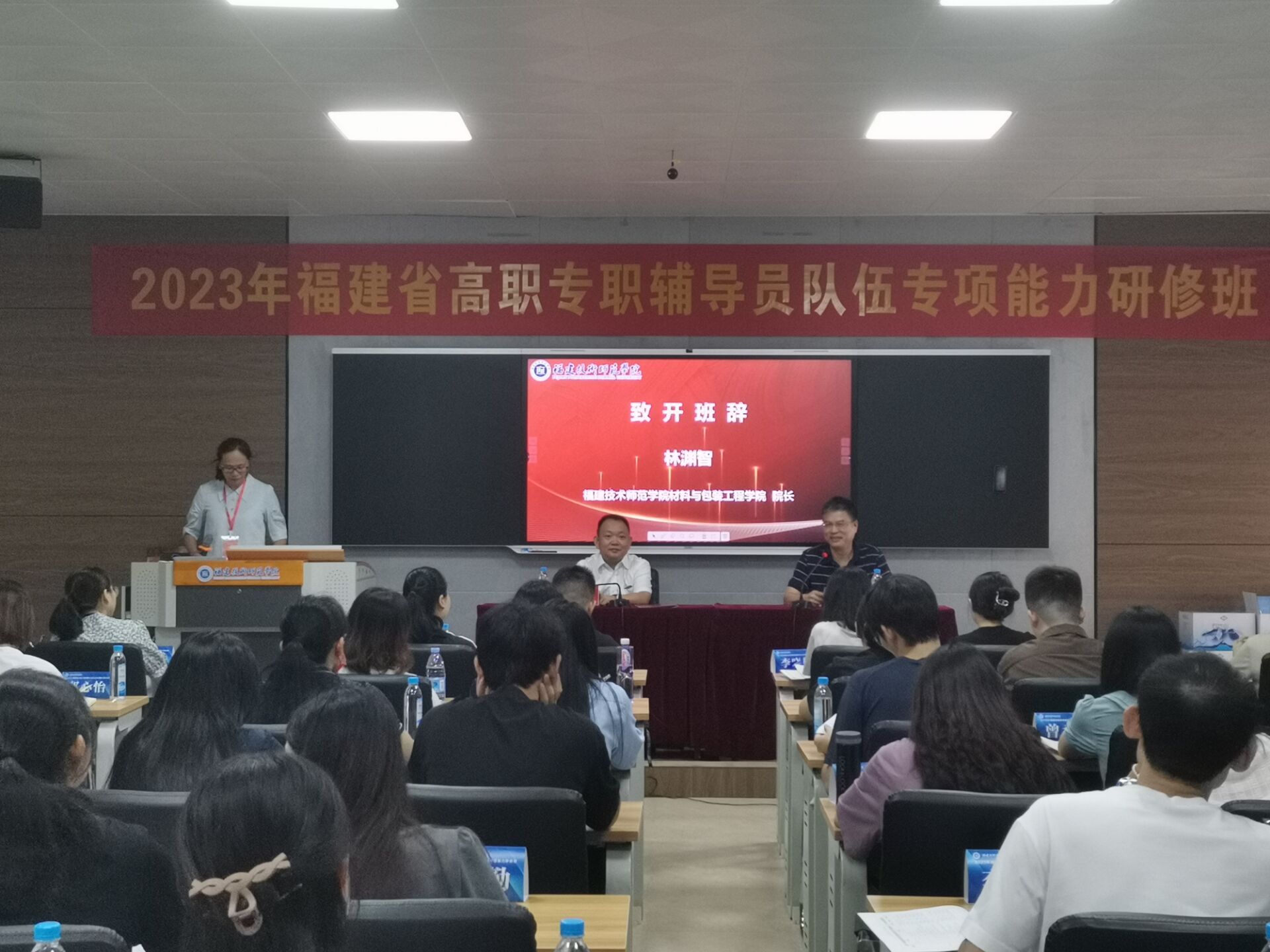 9月4日上午,由省职教师资培训中心主办、我院承办的2023年福建高职专职辅导员队伍专项能力研修班在石竹山校区顺利开班。省职教师资培训中心副主任、校继续教育学院院长何家标、继续教育学院副院长肖曦,学院院长林渊智、副院长李世迁、项目组全体工作人员以及研修班全体学员出席了开班仪式。