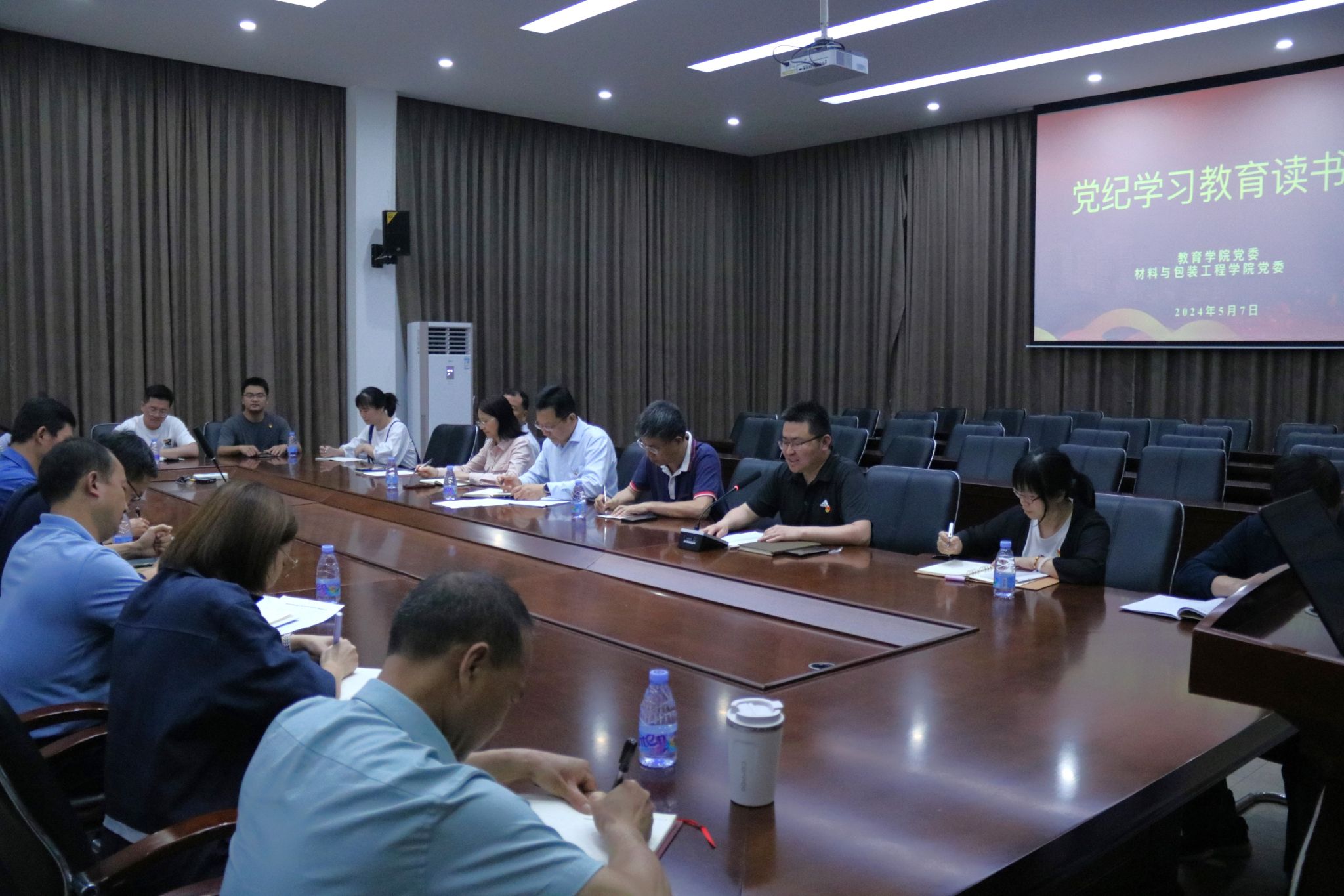 5月7日下午,教育学院党委、我院党委等2个二级学院党组织开展党纪学习教育读书班。校党委副书记林海峰、联系2个学院的纪检监察室干部柳颖莉、王霞以及2个学院党政领导、党委委员参加了读书班。