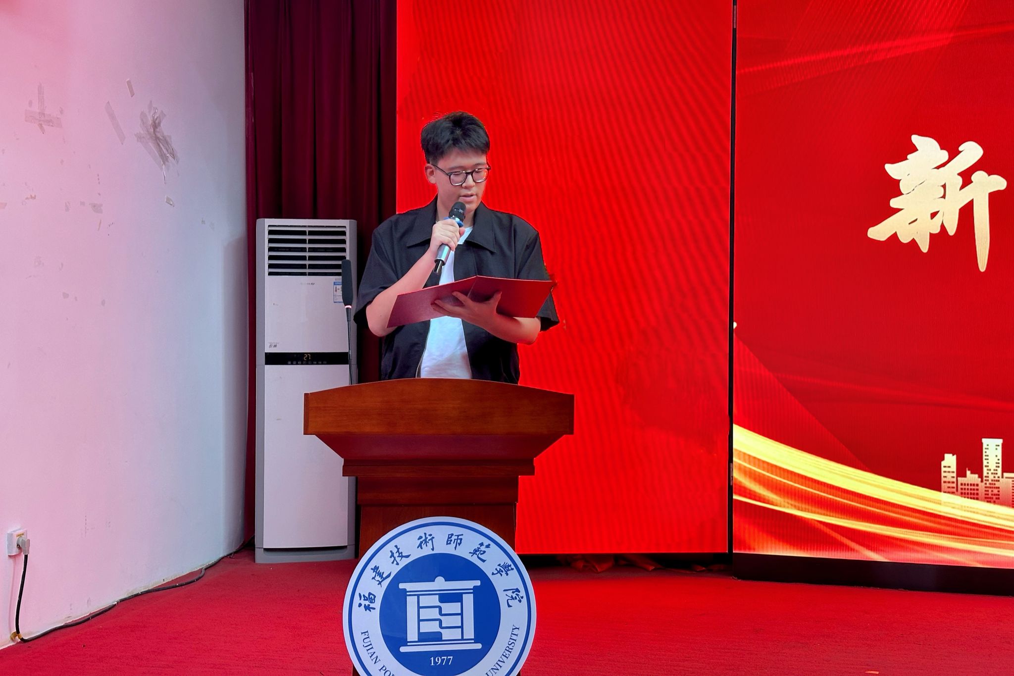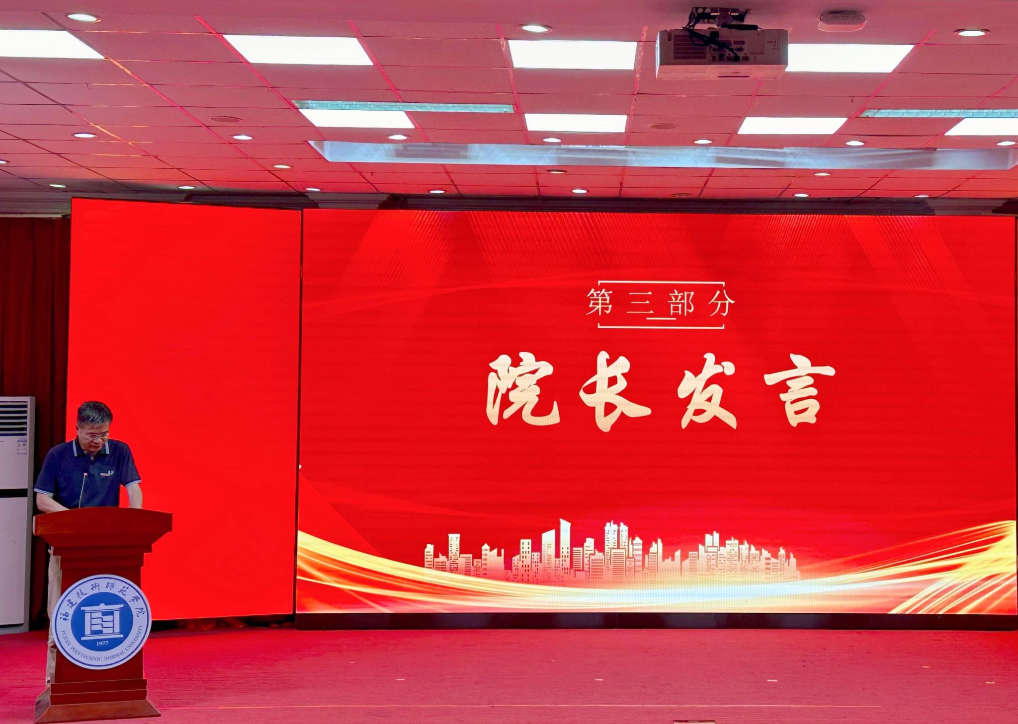 院长林渊智代表学院对2024级全体新生的到来表示热烈欢迎,他从新时代、新机遇和新希望切入,向新同学们讲述了学院的发展历程。他希望同学们可以尽快适应新的生活,明确个人发展目标,提出“考研”、“学科竞赛”、“四六级”三个关键词,激励同学们在接下来的大学生活中踔厉奋发,走好人生理想信念之路。