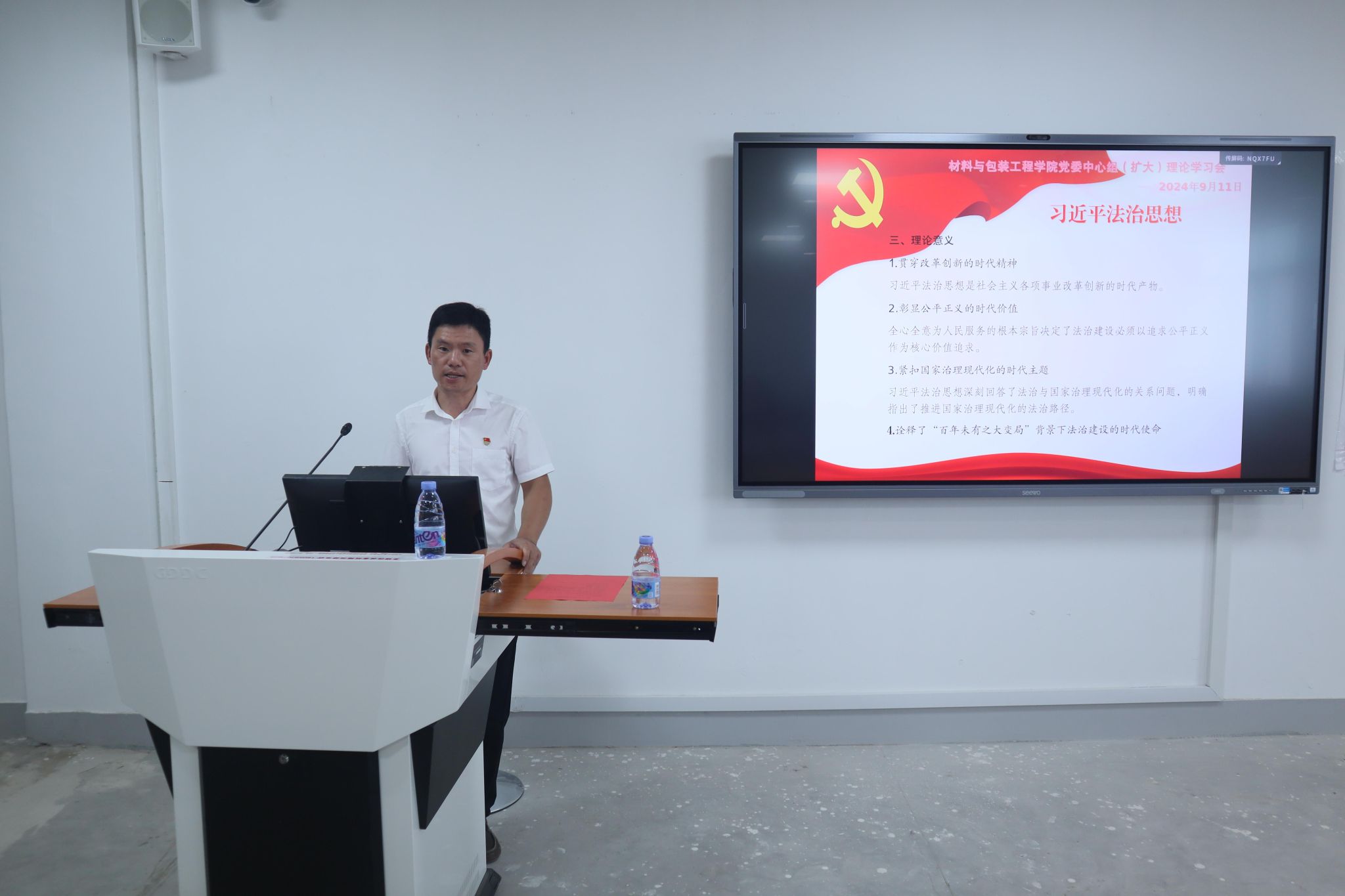 9月11日下午,我院党委在科学楼110召开理论学习中心组学习(扩大)会议,专题学习习近平法治思想,学院全体党员参加会议。