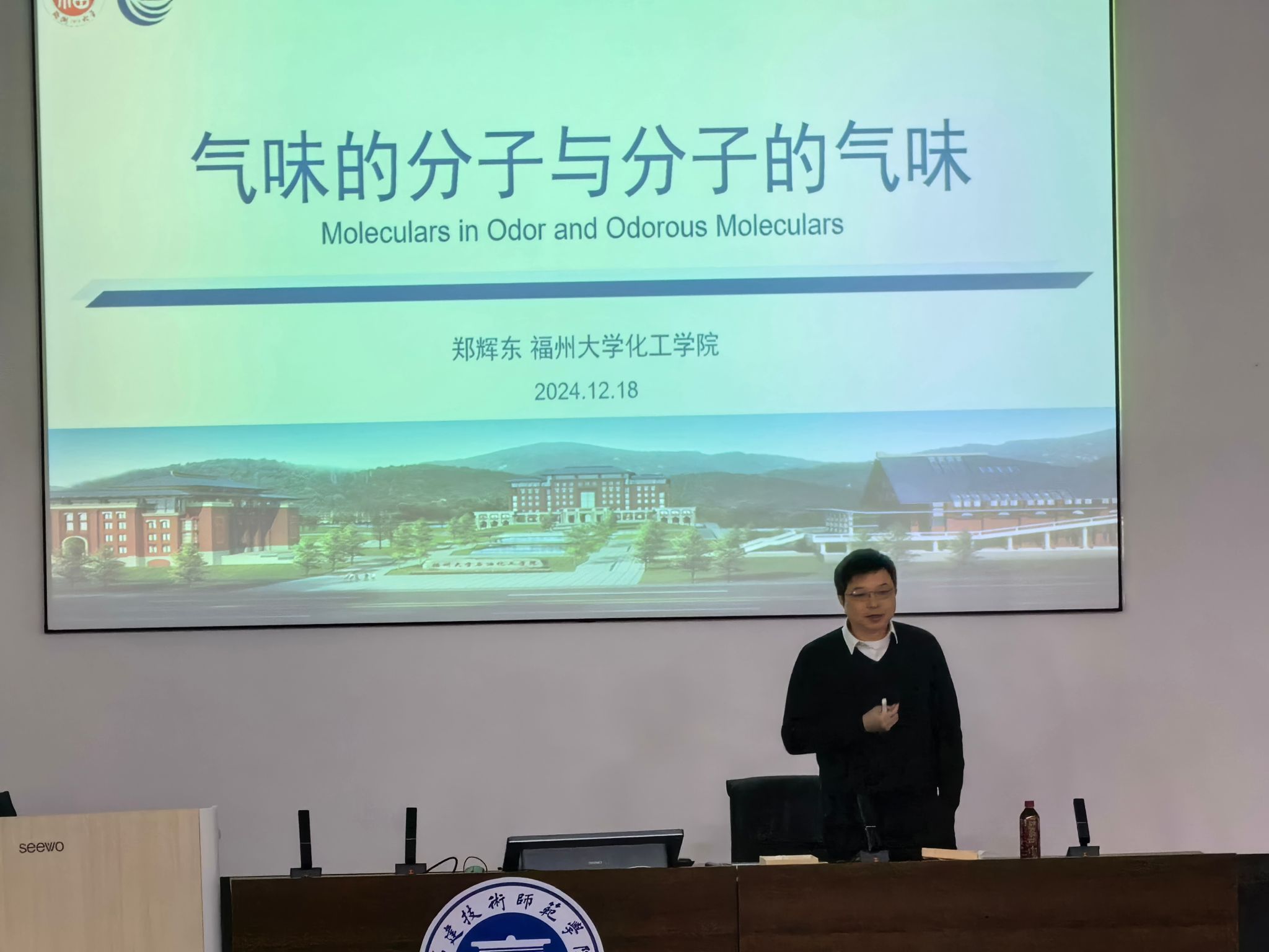 12月18日,福州大学化工学院郑辉东教授应邀为我院师生开设“气味的分子与分子的气味”学术讲座。我院应用化学教研室教师、应用化学专业本科生等230余人参加讲座。讲座由应用化学专业主任余美琼老师主持。