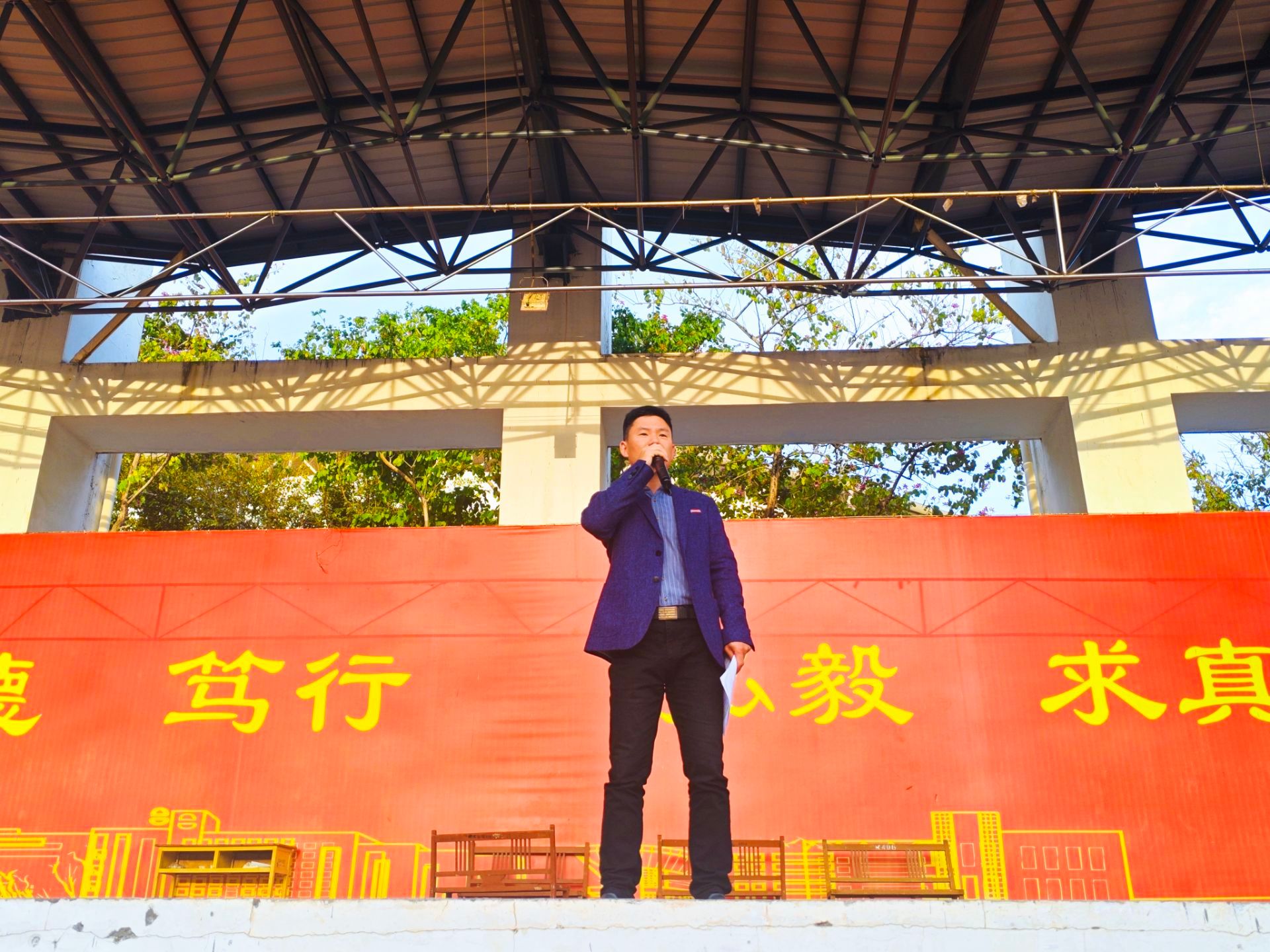 升旗仪式结束后,学院党委副书记(主持工作)陈明生进行了国旗下讲话。他指出,爱国主义是中华民族精神的核心,是青春最亮丽的底色,希望同学们通过升旗仪式厚植家国情怀,培养爱国爱党精神。他向全院师生提出希望,一是爱国爱家,厚植家国情怀。要始终坚定不移听党话、跟党走,用实际行动践行“请党放心,强国有我”的青春誓言;二是磨练毅力,练就过硬本领。要勤学善思,能吃苦、肯奉献,敢于突破自身局限性、走出舒适圈,迎难而上,奋勇拼搏。三是锤炼品德,成就伟大梦想。要锤炼品德修养,努力戒骄戒躁,做目光远大、志向高远、境界崇高的新时代好青年。