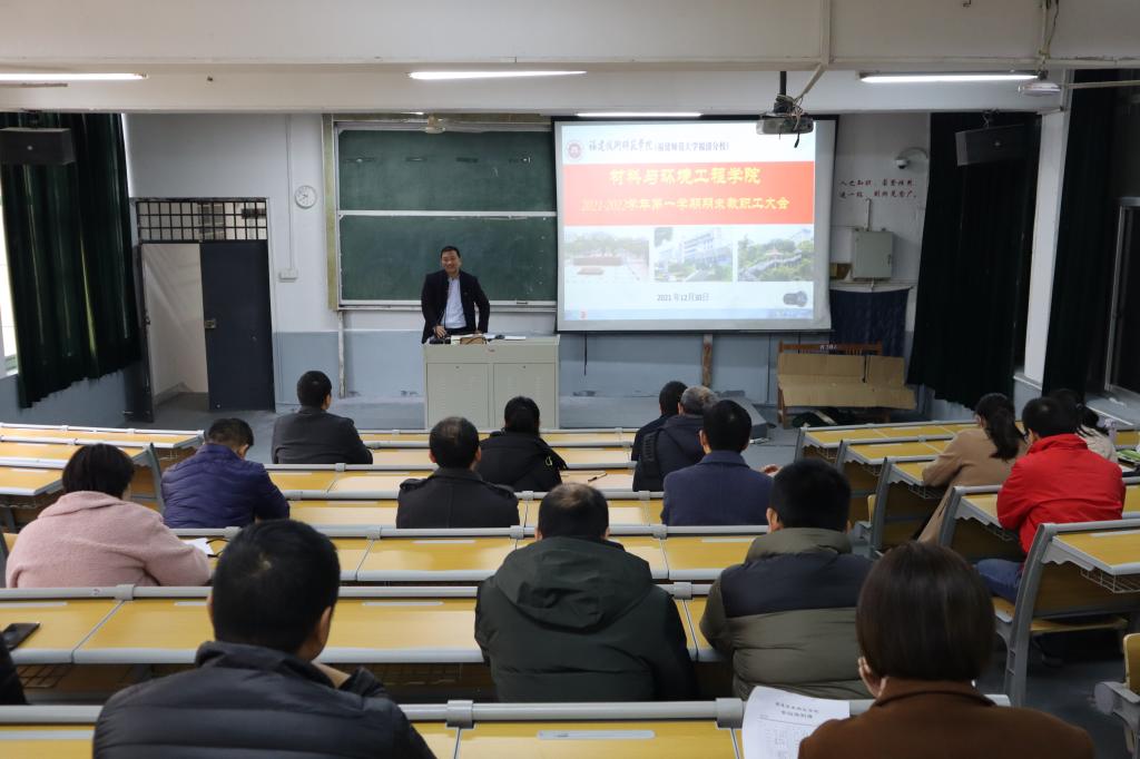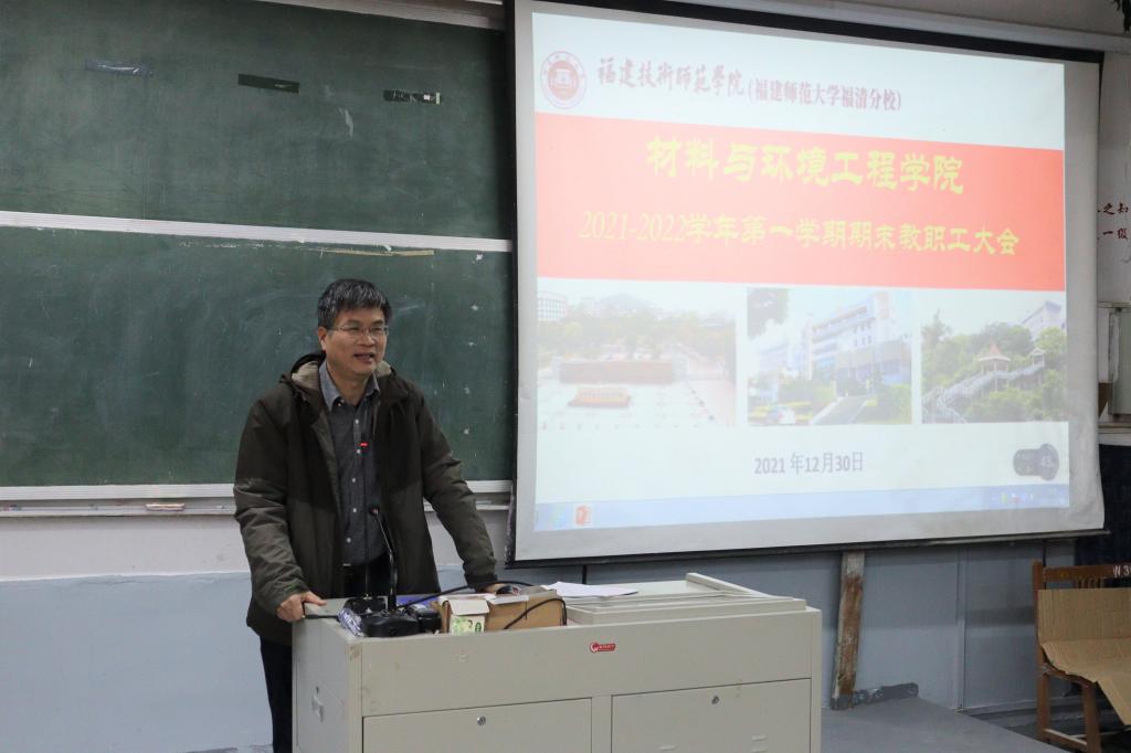 学院行政主要负责人林渊智就期末监考工作、2022届毕业生论文指导工作做出具体要求,并对下学期的科研经费规划进行说明,要求全体教师将主要精力放在教学和科研工作上,为学校、学院的发展作出贡献。
